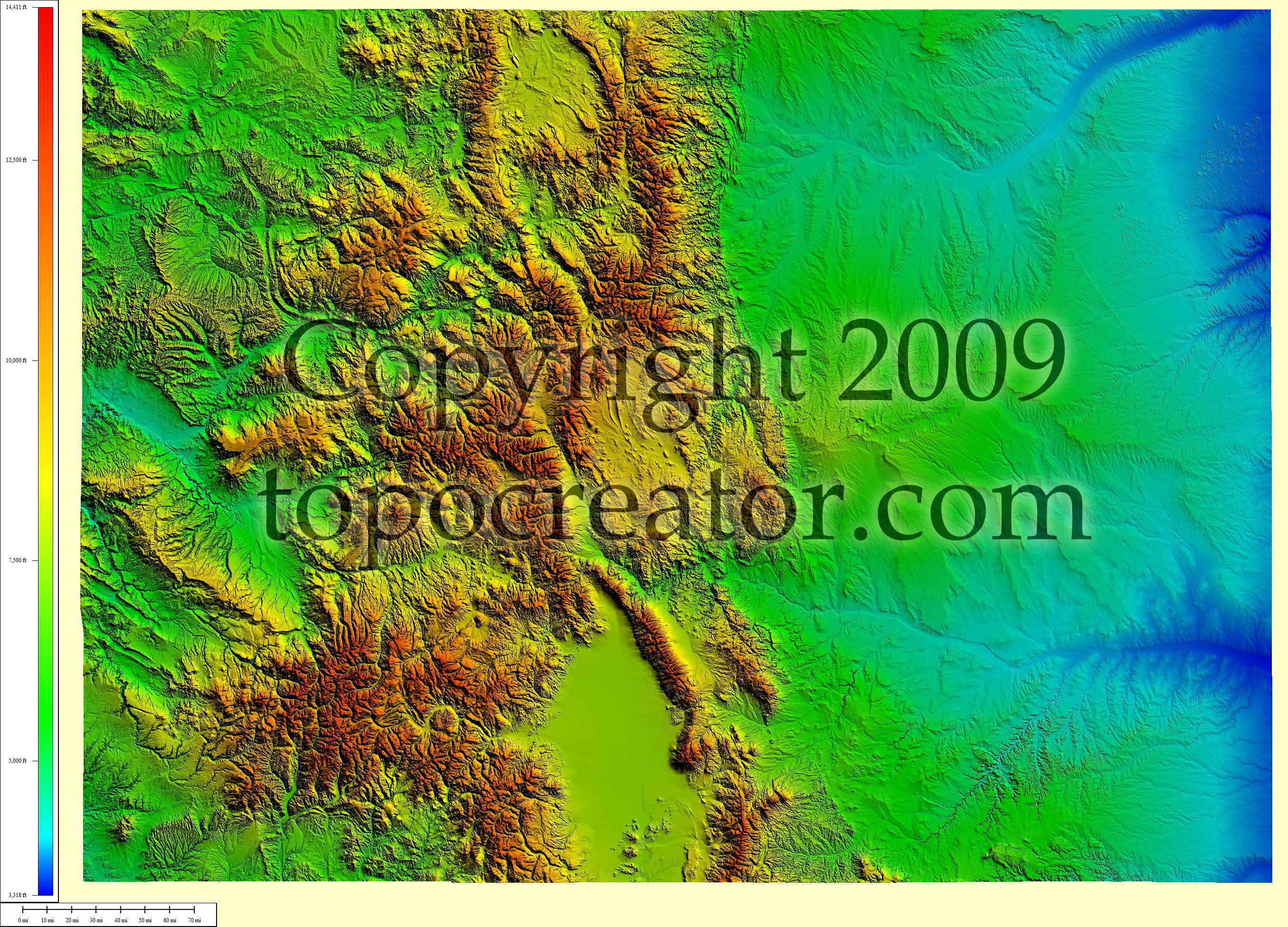 Terms of use. All maps displayed on this page or downloadable via a "download" link on this page are © 2009 topocreator.com released to the public under a Creative Commons Attribution-Share Alike license. Maps are available for purchase for a small fee for educational, personal, and commercial usage under an alternative license. The elevation data used in the creation of these maps has been obtained through the USGS, NOAA, and the US Census Bureau via the public domain.
