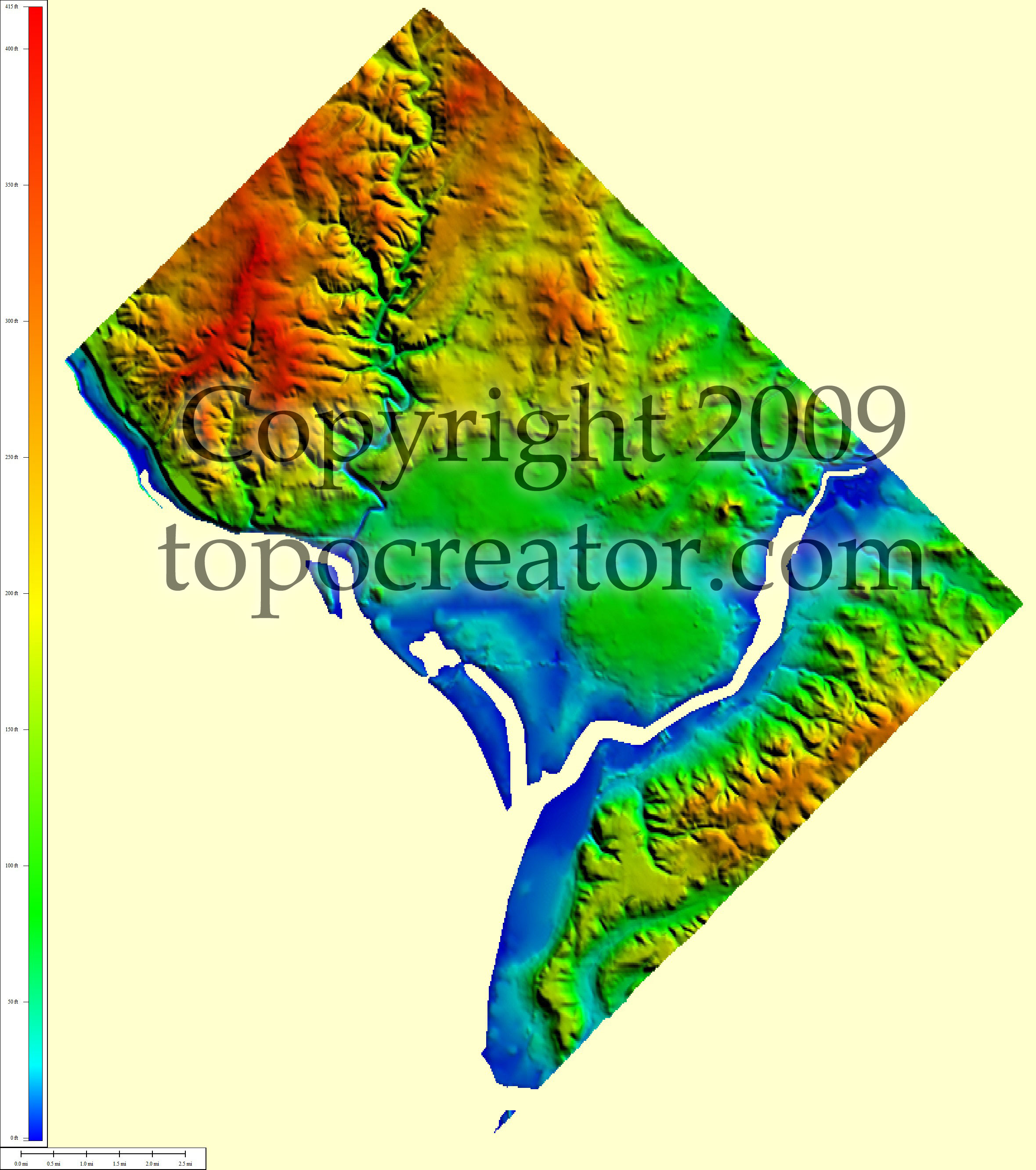 Terms of use. All maps displayed on this page or downloadable via a "download" link on this page are © 2009 topocreator.com released to the public under a Creative Commons Attribution-Share Alike license. Maps are available for purchase for a small fee for educational, personal, and commercial usage under an alternative license. The elevation data used in the creation of these maps has been obtained through the USGS, NOAA, and the US Census Bureau via the public domain.