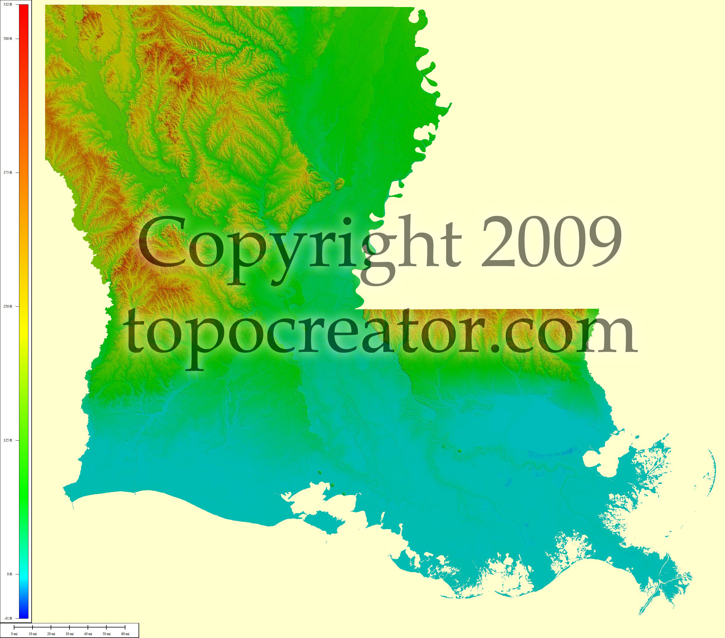 Terms of use. All maps displayed on this page or downloadable via a "download" link on this page are © 2009 topocreator.com released to the public under a Creative Commons Attribution-Share Alike license. Maps are available for purchase for a small fee for educational, personal, and commercial usage under an alternative license. The elevation data used in the creation of these maps has been obtained through the USGS, NOAA, and the US Census Bureau via the public domain.