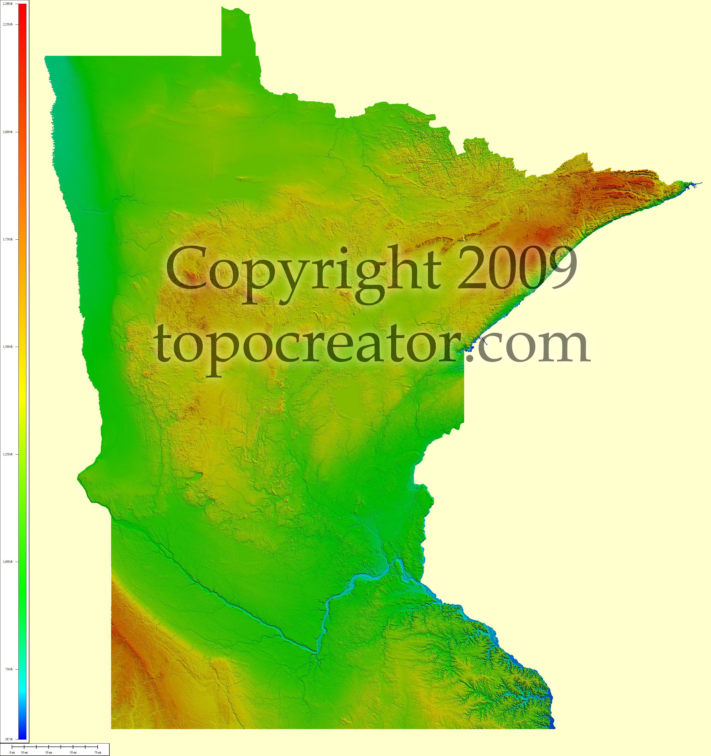 Terms of use. All maps displayed on this page or downloadable via a "download" link on this page are © 2009 topocreator.com released to the public under a Creative Commons Attribution-Share Alike license. Maps are available for purchase for a small fee for educational, personal, and commercial usage under an alternative license. The elevation data used in the creation of these maps has been obtained through the USGS, NOAA, and the US Census Bureau via the public domain.