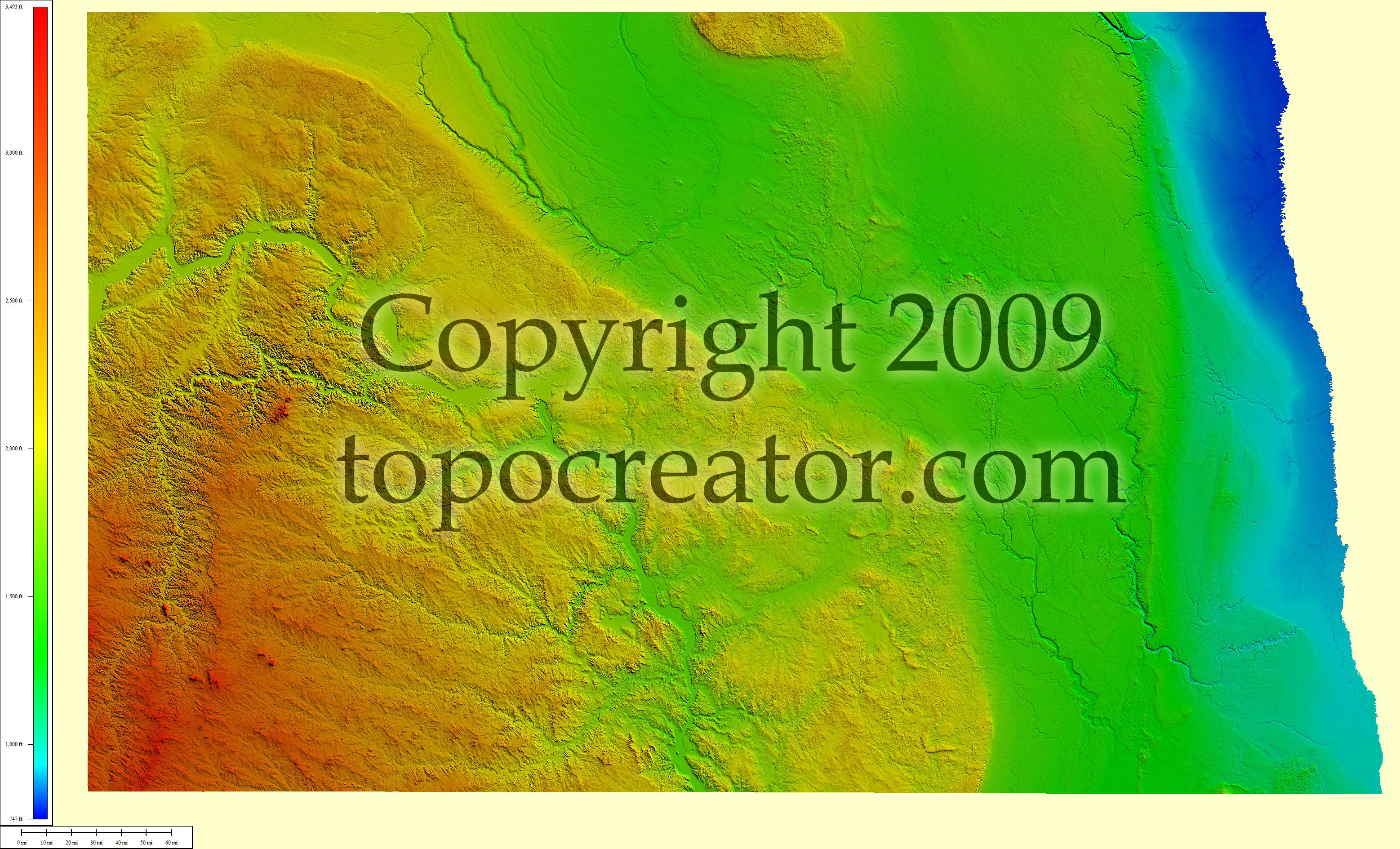 Terms of use. All maps displayed on this page or downloadable via a "download" link on this page are © 2009 topocreator.com released to the public under a Creative Commons Attribution-Share Alike license. Maps are available for purchase for a small fee for educational, personal, and commercial usage under an alternative license. The elevation data used in the creation of these maps has been obtained through the USGS, NOAA, and the US Census Bureau via the public domain.