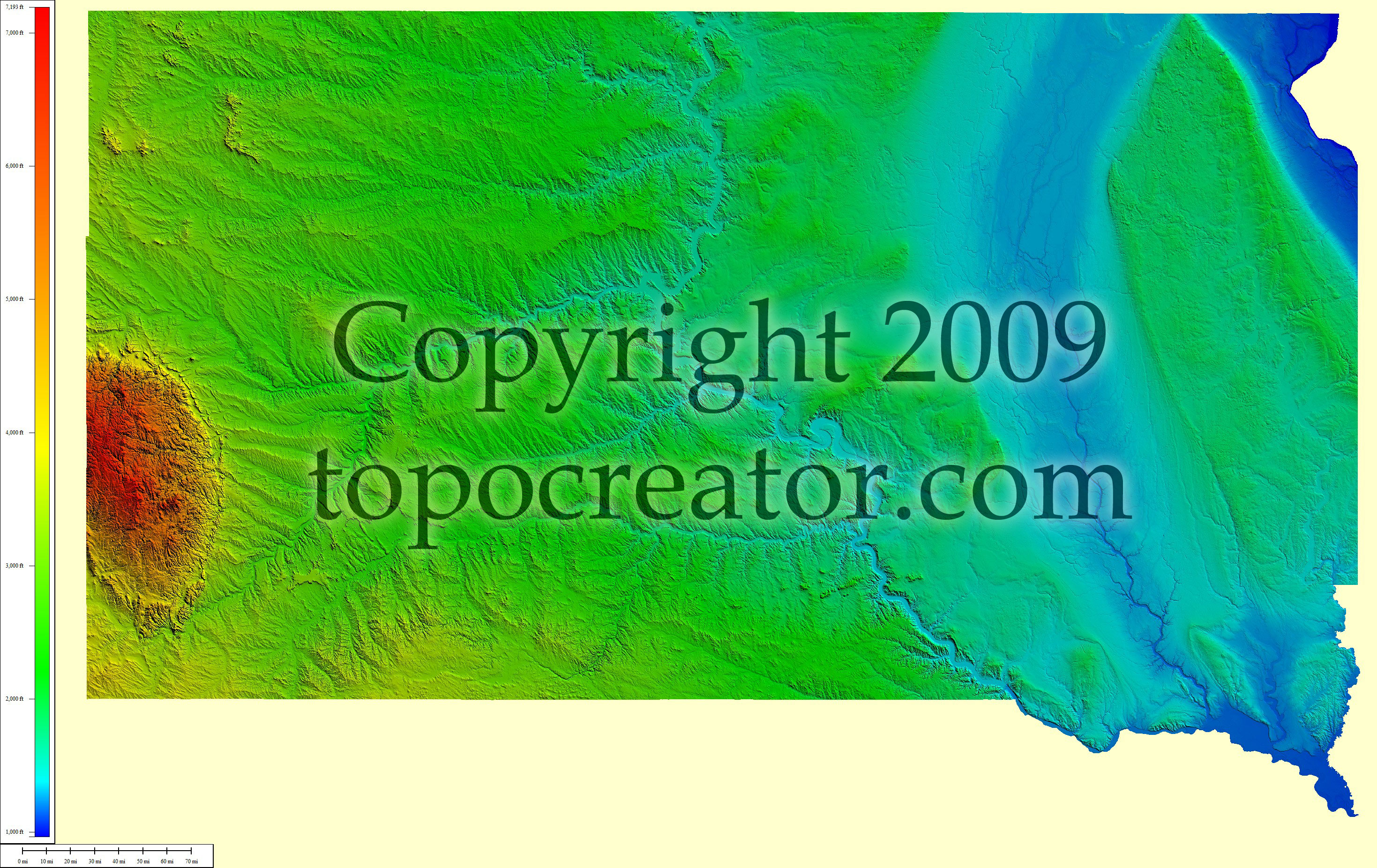 Terms of use. All maps displayed on this page or downloadable via a "download" link on this page are © 2009 topocreator.com released to the public under a Creative Commons Attribution-Share Alike license. Maps are available for purchase for a small fee for educational, personal, and commercial usage under an alternative license. The elevation data used in the creation of these maps has been obtained through the USGS, NOAA, and the US Census Bureau via the public domain.