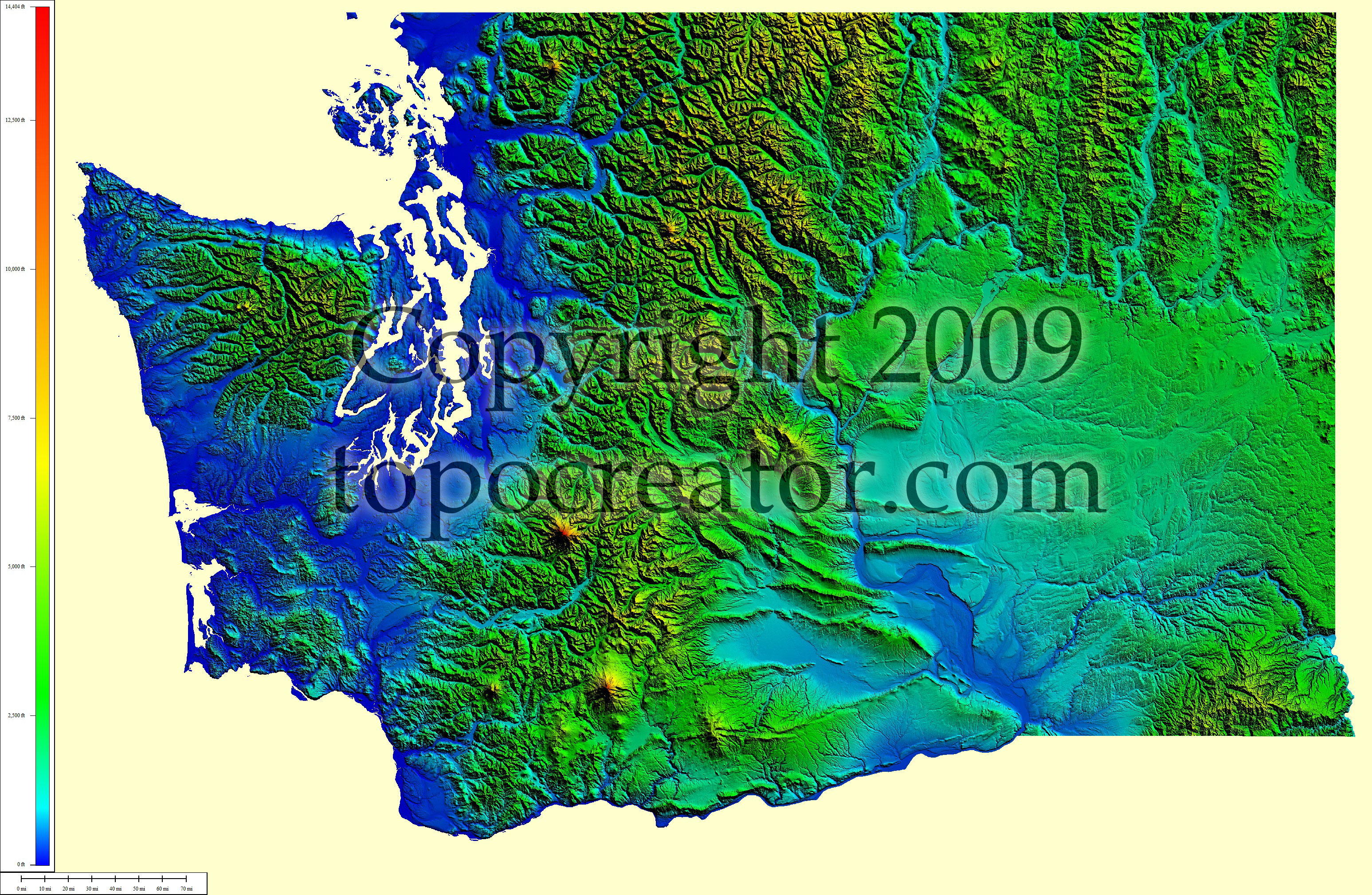 Terms of use. All maps displayed on this page or downloadable via a "download" link on this page are © 2009 topocreator.com released to the public under a Creative Commons Attribution-Share Alike license. Maps are available for purchase for a small fee for educational, personal, and commercial usage under an alternative license. The elevation data used in the creation of these maps has been obtained through the USGS, NOAA, and the US Census Bureau via the public domain.