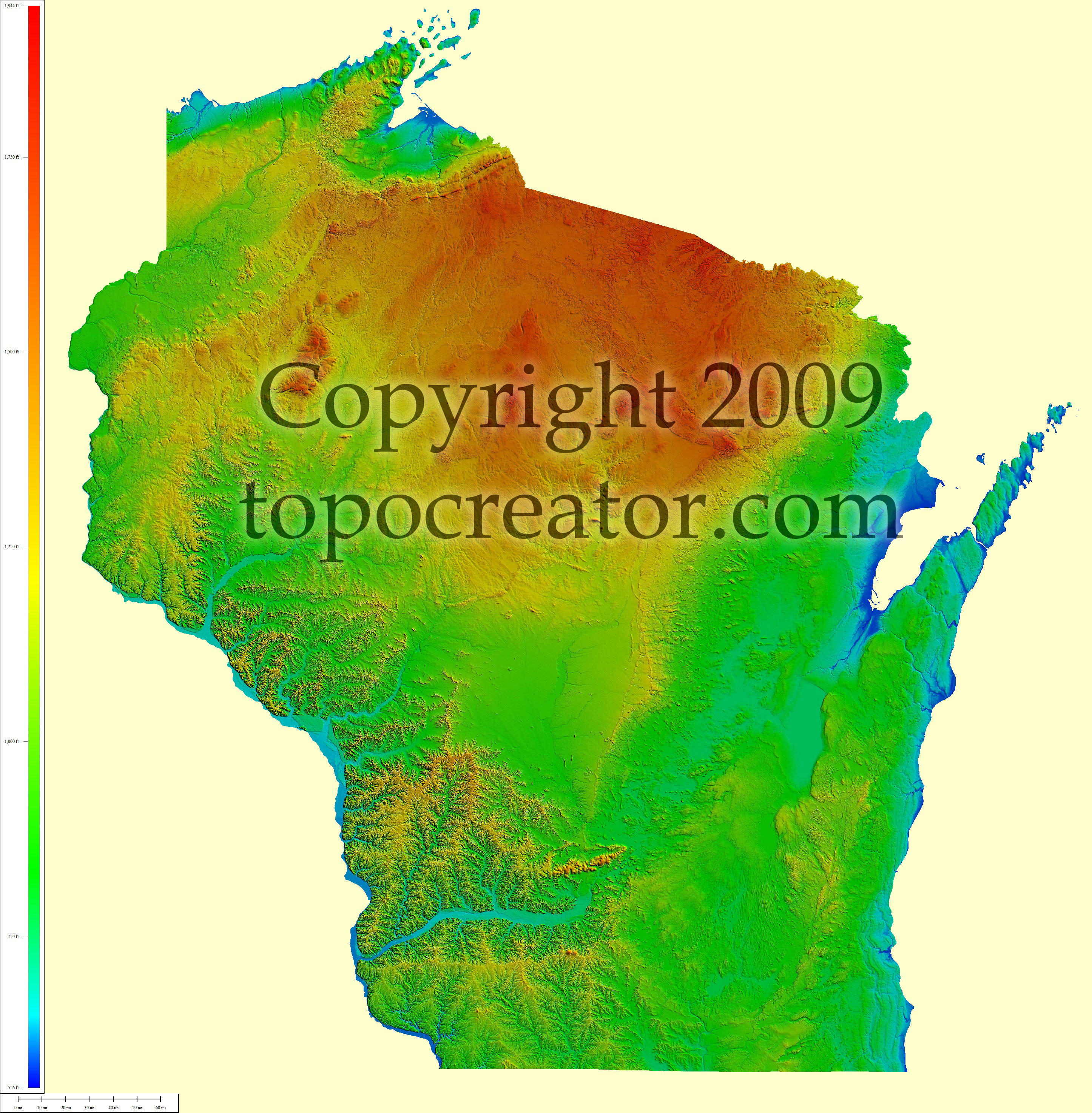 Terms of use. All maps displayed on this page or downloadable via a "download" link on this page are © 2009 topocreator.com released to the public under a Creative Commons Attribution-Share Alike license. Maps are available for purchase for a small fee for educational, personal, and commercial usage under an alternative license. The elevation data used in the creation of these maps has been obtained through the USGS, NOAA, and the US Census Bureau via the public domain.