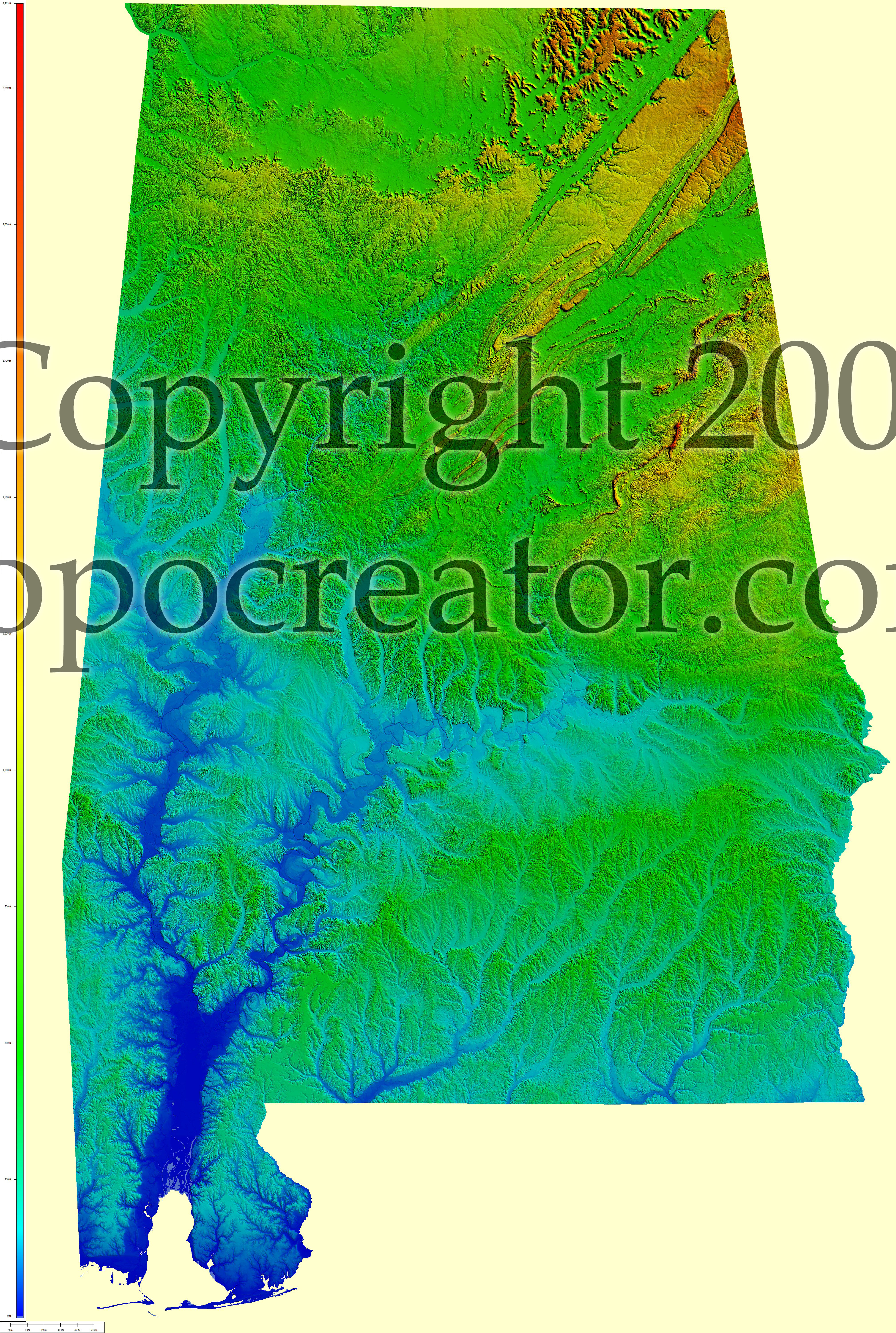 Terms of use. All maps displayed on this page or downloadable via a "download" link on this page are © 2009 topocreator.com released to the public under a Creative Commons Attribution-Share Alike license. Maps are available for purchase for a small fee for educational, personal, and commercial usage under an alternative license. The elevation data used in the creation of these maps has been obtained through the USGS, NOAA, and the US Census Bureau via the public domain.