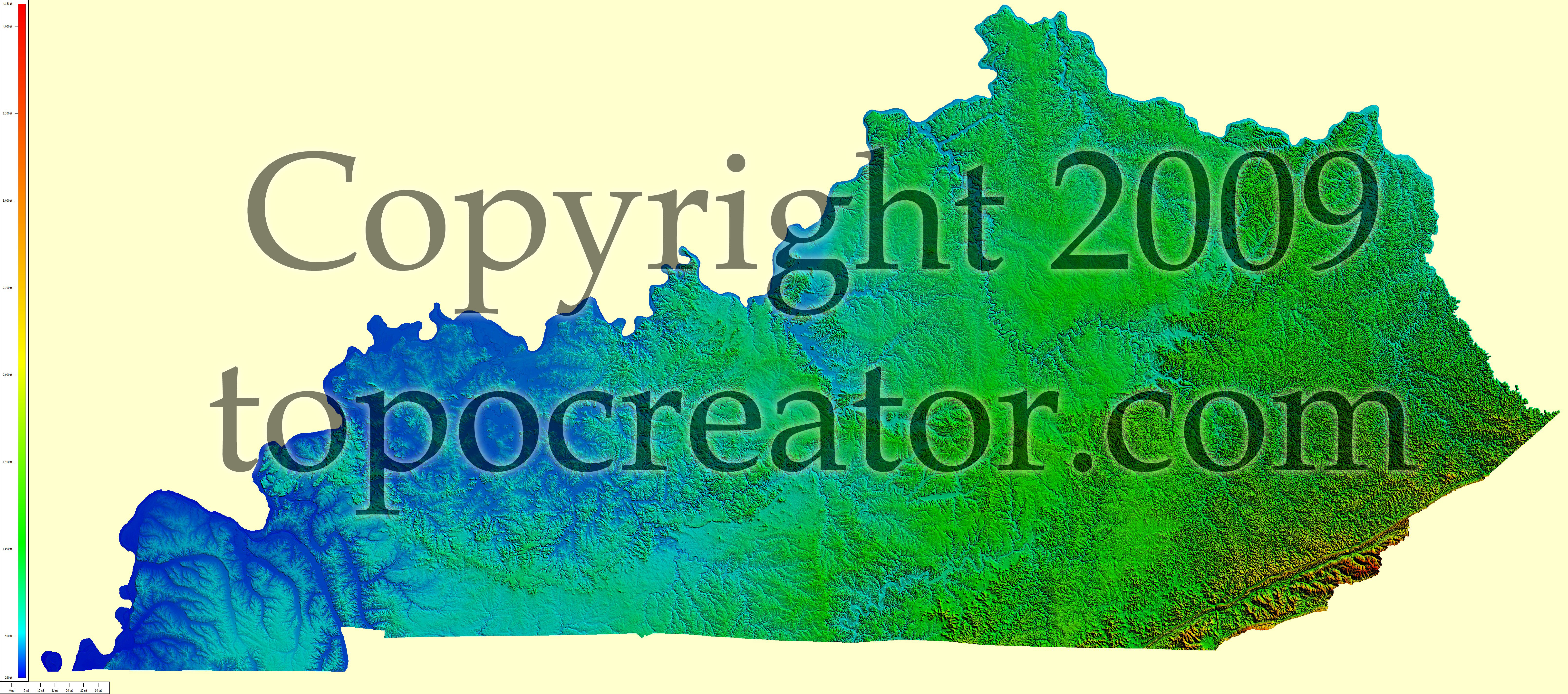 Terms of use. All maps displayed on this page or downloadable via a "download" link on this page are © 2009 topocreator.com released to the public under a Creative Commons Attribution-Share Alike license. Maps are available for purchase for a small fee for educational, personal, and commercial usage under an alternative license. The elevation data used in the creation of these maps has been obtained through the USGS, NOAA, and the US Census Bureau via the public domain.