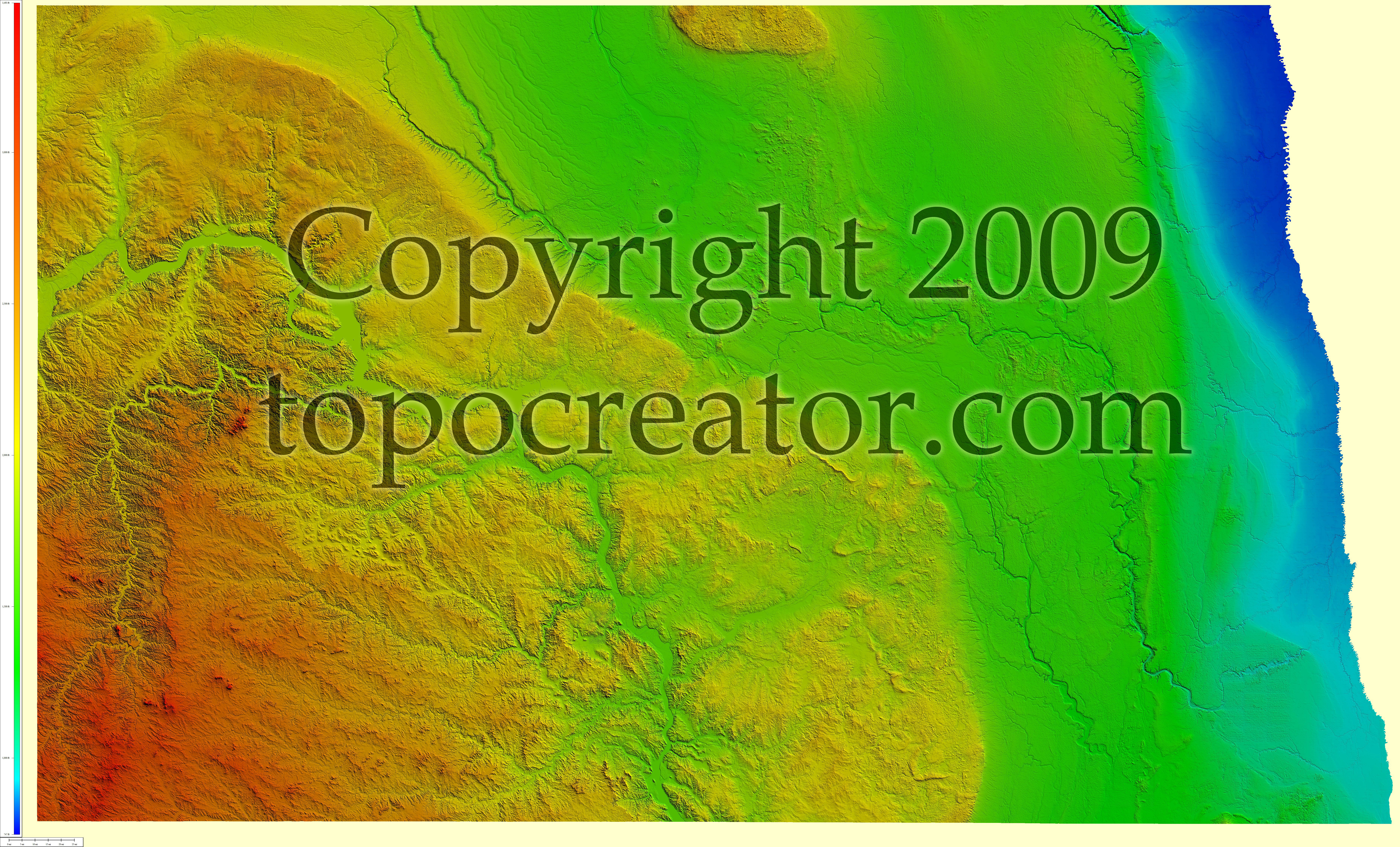Terms of use. All maps displayed on this page or downloadable via a "download" link on this page are © 2009 topocreator.com released to the public under a Creative Commons Attribution-Share Alike license. Maps are available for purchase for a small fee for educational, personal, and commercial usage under an alternative license. The elevation data used in the creation of these maps has been obtained through the USGS, NOAA, and the US Census Bureau via the public domain.