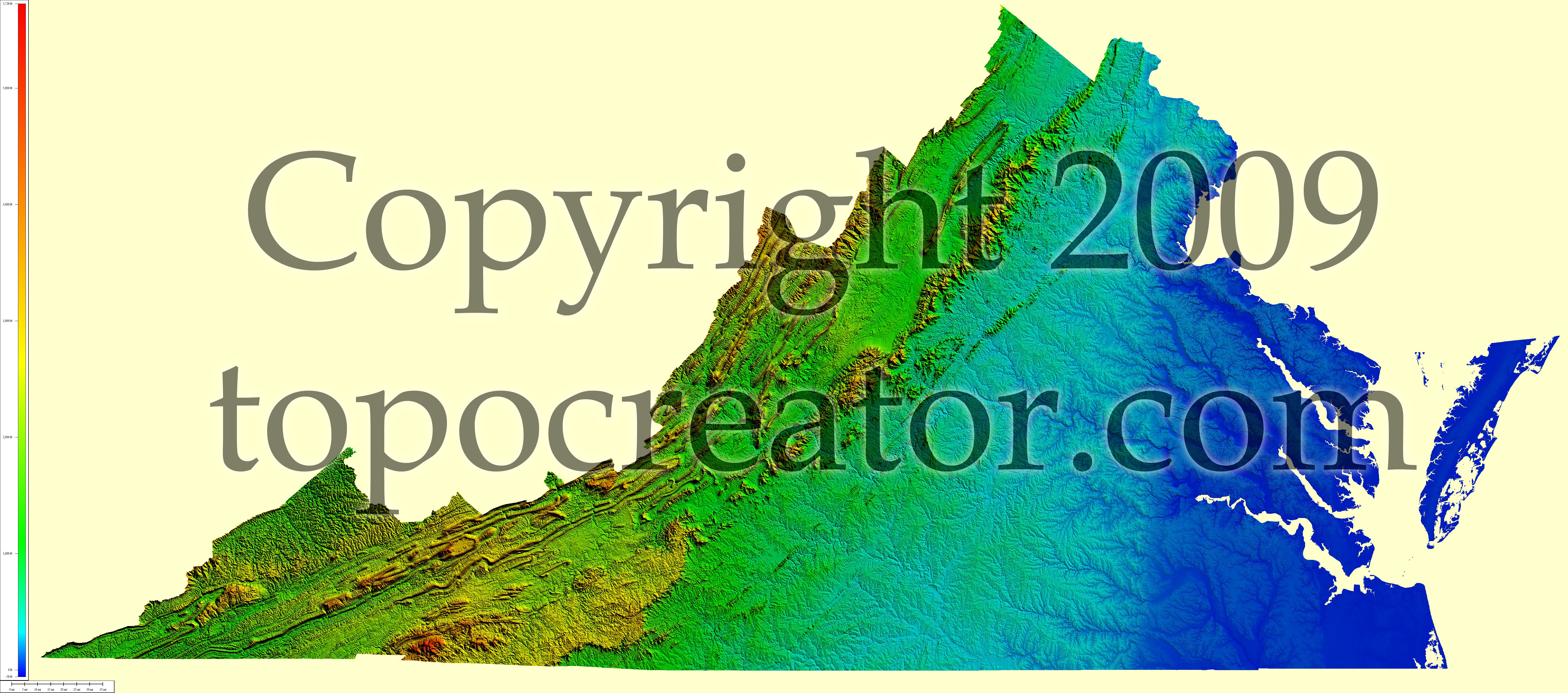 Terms of use. All maps displayed on this page or downloadable via a "download" link on this page are © 2009 topocreator.com released to the public under a Creative Commons Attribution-Share Alike license. Maps are available for purchase for a small fee for educational, personal, and commercial usage under an alternative license. The elevation data used in the creation of these maps has been obtained through the USGS, NOAA, and the US Census Bureau via the public domain.