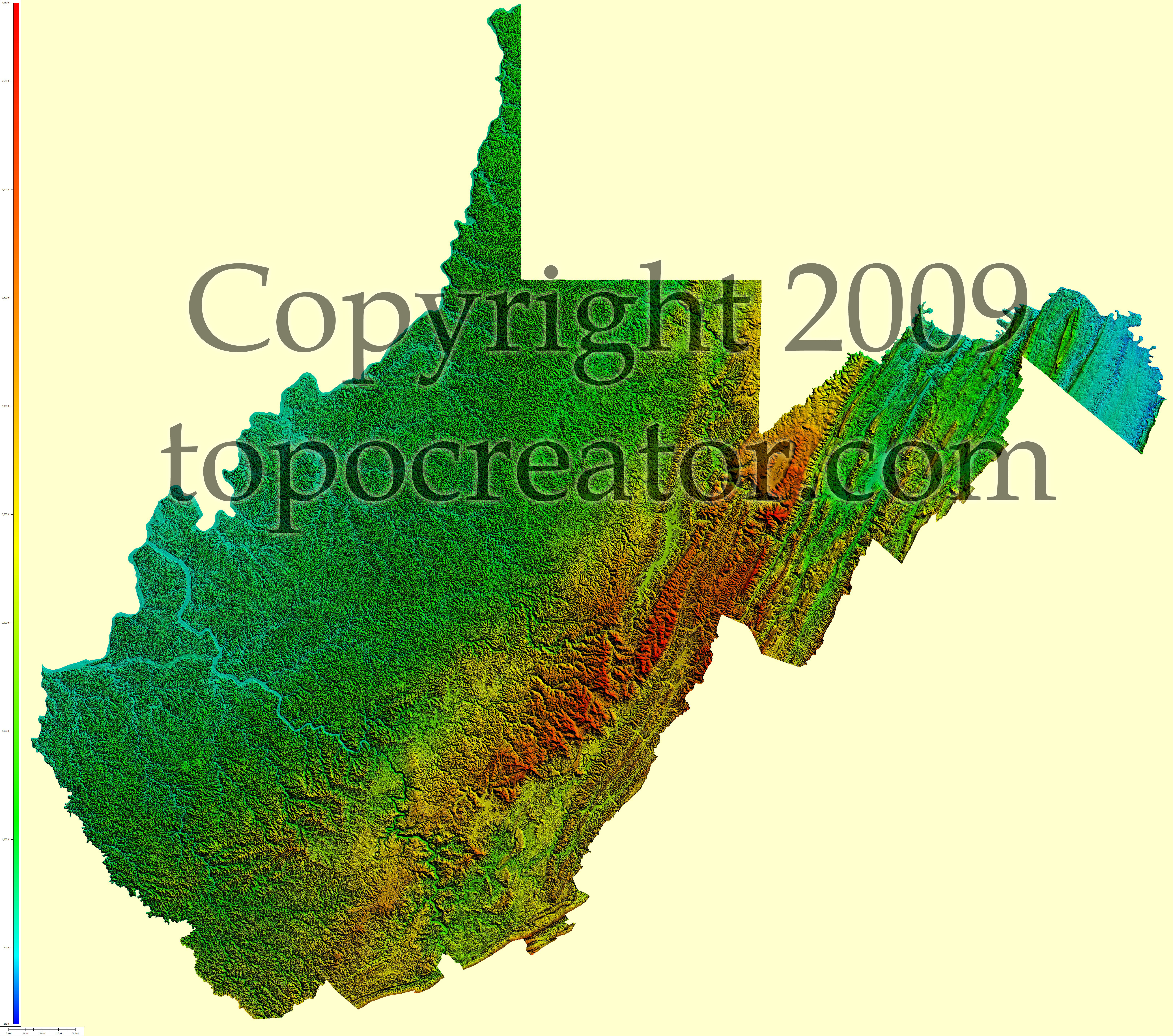 Terms of use. All maps displayed on this page or downloadable via a "download" link on this page are © 2009 topocreator.com released to the public under a Creative Commons Attribution-Share Alike license. Maps are available for purchase for a small fee for educational, personal, and commercial usage under an alternative license. The elevation data used in the creation of these maps has been obtained through the USGS, NOAA, and the US Census Bureau via the public domain.