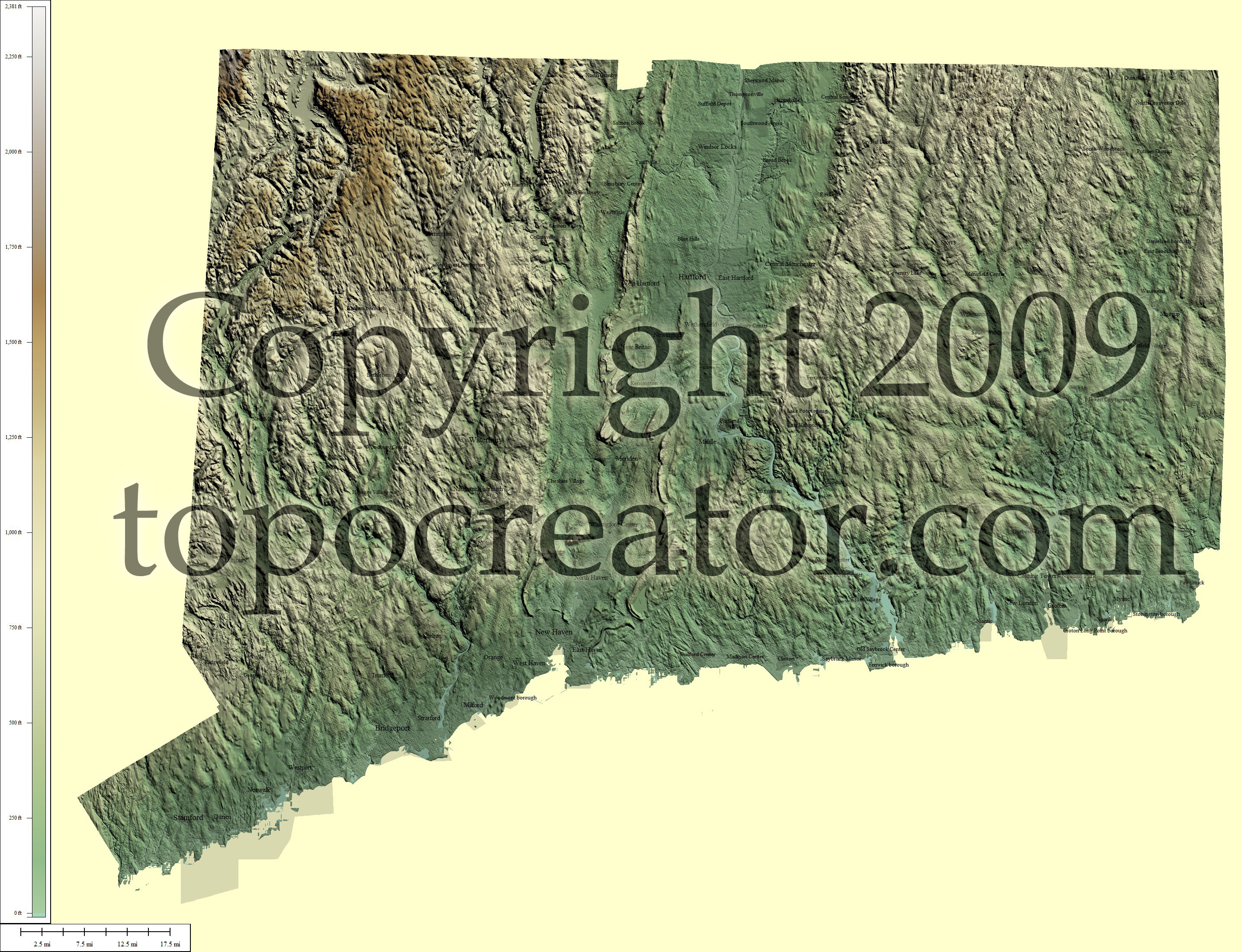 Terms of use. All maps displayed on this page or downloadable via a "download" link on this page are © 2009 topocreator.com released to the public under a Creative Commons Attribution-Share Alike license. Maps are available for purchase for a small fee for educational, personal, and commercial usage under an alternative license. The elevation data used in the creation of these maps has been obtained through the USGS, NOAA, and the US Census Bureau via the public domain.