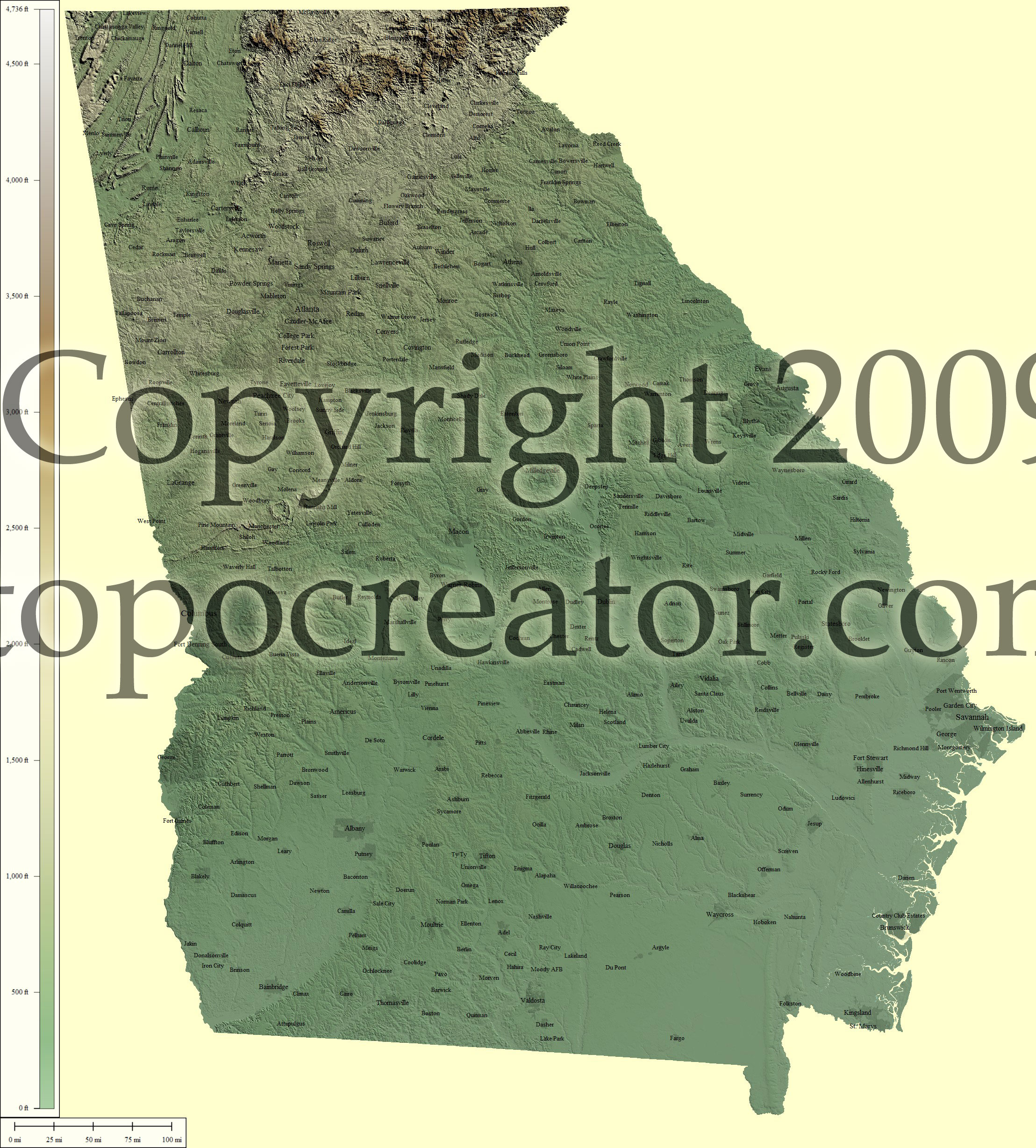 Terms of use. All maps displayed on this page or downloadable via a "download" link on this page are © 2009 topocreator.com released to the public under a Creative Commons Attribution-Share Alike license. Maps are available for purchase for a small fee for educational, personal, and commercial usage under an alternative license. The elevation data used in the creation of these maps has been obtained through the USGS, NOAA, and the US Census Bureau via the public domain.