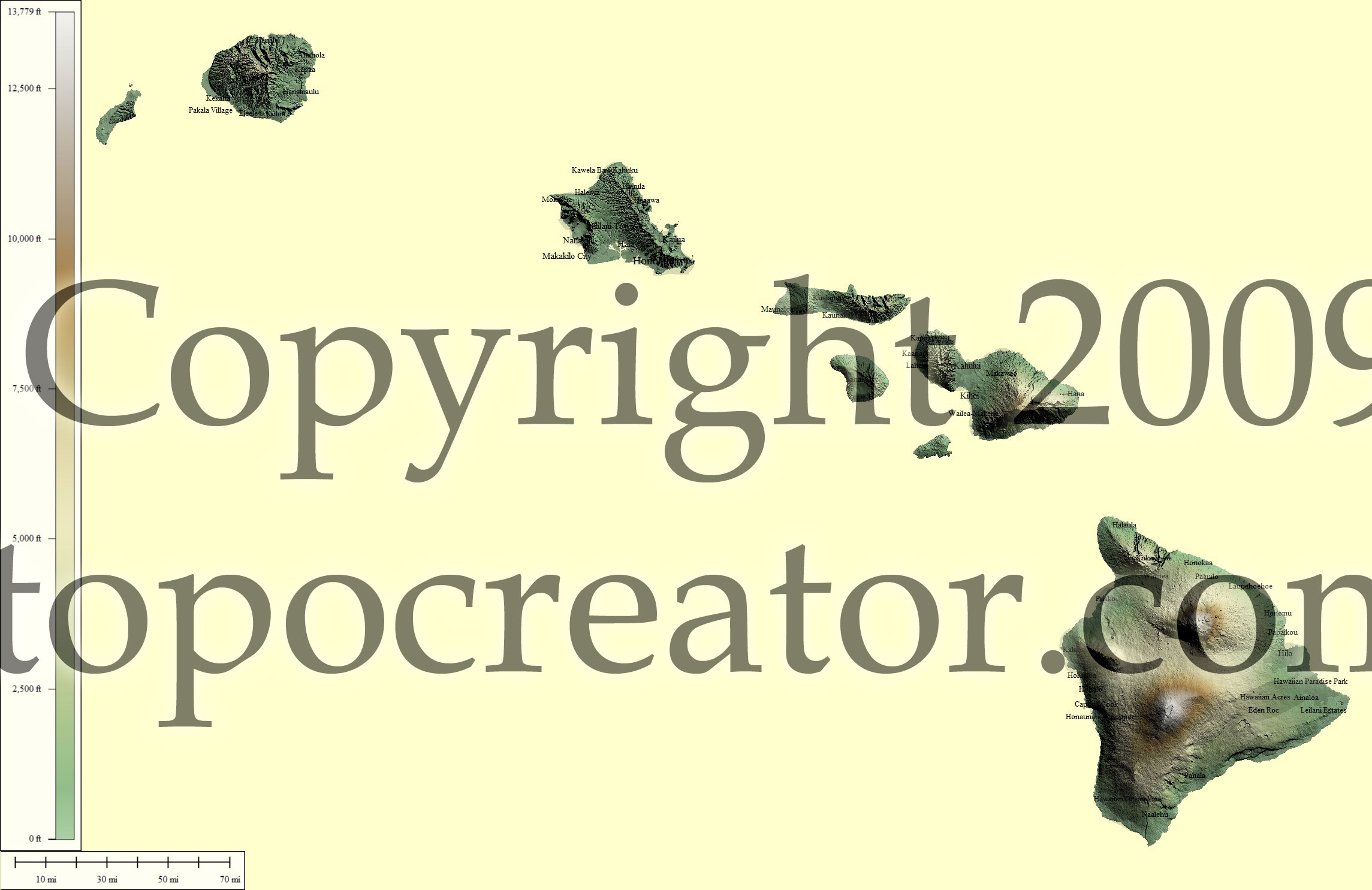 Terms of use. All maps displayed on this page or downloadable via a "download" link on this page are © 2009 topocreator.com released to the public under a Creative Commons Attribution-Share Alike license. Maps are available for purchase for a small fee for educational, personal, and commercial usage under an alternative license. The elevation data used in the creation of these maps has been obtained through the USGS, NOAA, and the US Census Bureau via the public domain.