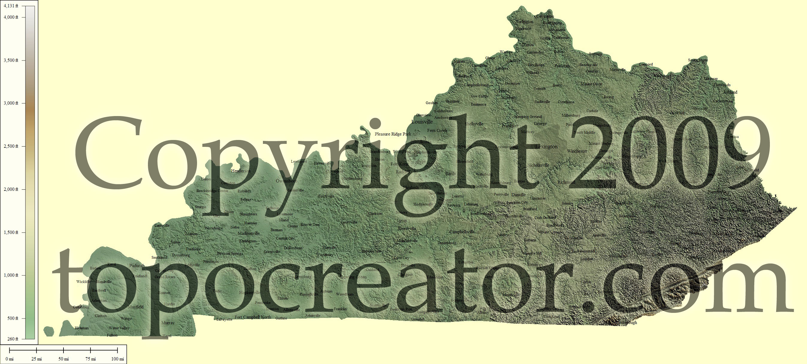 Terms of use. All maps displayed on this page or downloadable via a "download" link on this page are © 2009 topocreator.com released to the public under a Creative Commons Attribution-Share Alike license. Maps are available for purchase for a small fee for educational, personal, and commercial usage under an alternative license. The elevation data used in the creation of these maps has been obtained through the USGS, NOAA, and the US Census Bureau via the public domain.