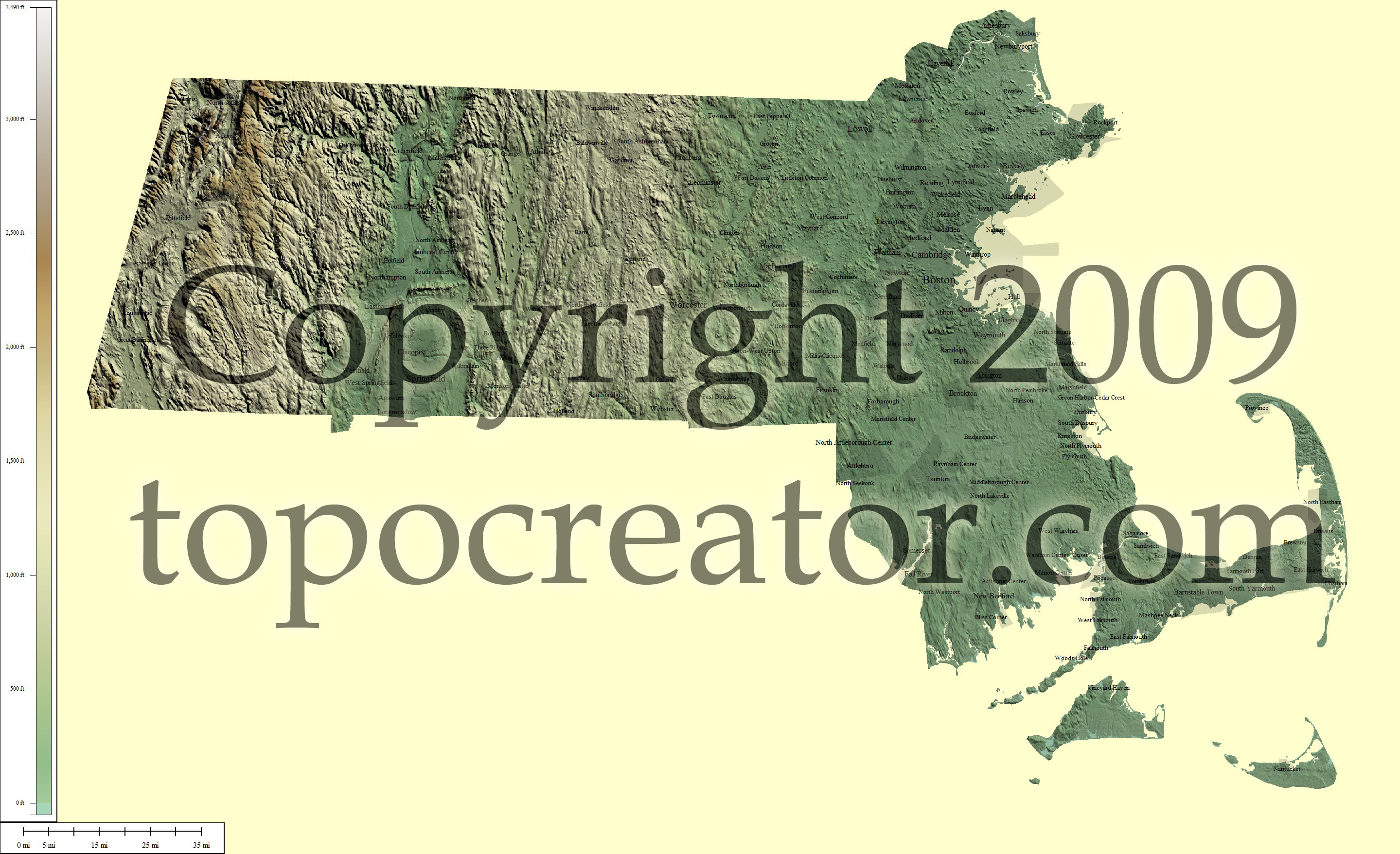 Terms of use. All maps displayed on this page or downloadable via a "download" link on this page are © 2009 topocreator.com released to the public under a Creative Commons Attribution-Share Alike license. Maps are available for purchase for a small fee for educational, personal, and commercial usage under an alternative license. The elevation data used in the creation of these maps has been obtained through the USGS, NOAA, and the US Census Bureau via the public domain.