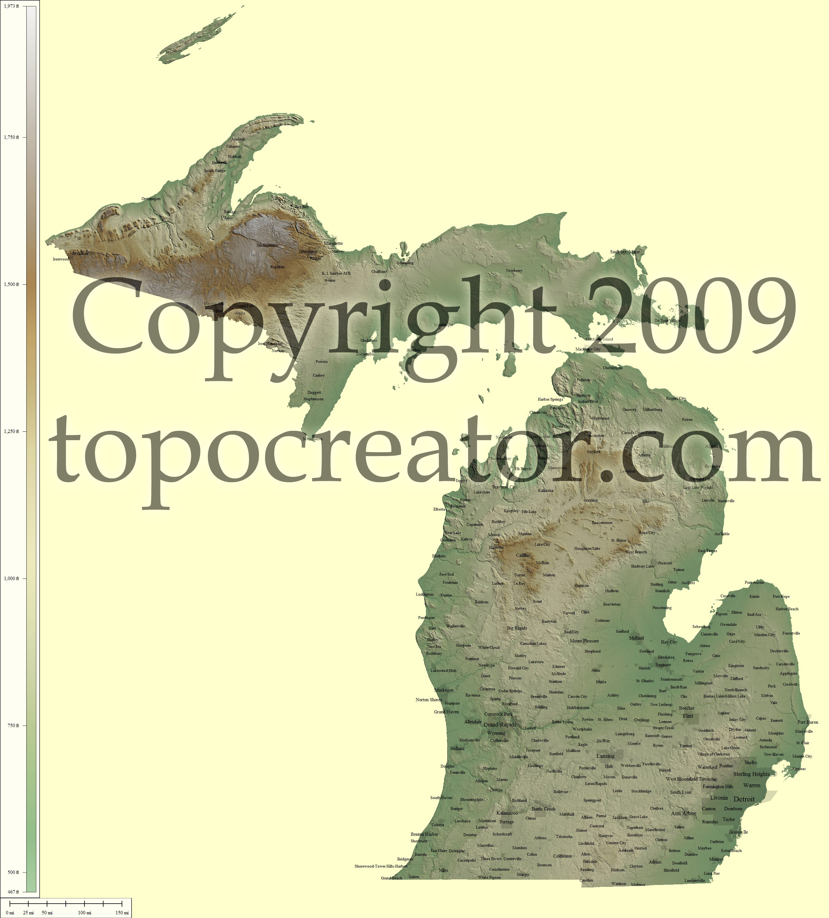 Terms of use. All maps displayed on this page or downloadable via a "download" link on this page are © 2009 topocreator.com released to the public under a Creative Commons Attribution-Share Alike license. Maps are available for purchase for a small fee for educational, personal, and commercial usage under an alternative license. The elevation data used in the creation of these maps has been obtained through the USGS, NOAA, and the US Census Bureau via the public domain.