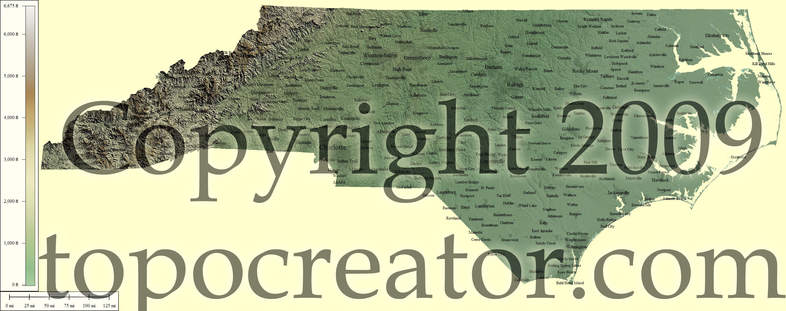 Terms of use. All maps displayed on this page or downloadable via a "download" link on this page are © 2009 topocreator.com released to the public under a Creative Commons Attribution-Share Alike license. Maps are available for purchase for a small fee for educational, personal, and commercial usage under an alternative license. The elevation data used in the creation of these maps has been obtained through the USGS, NOAA, and the US Census Bureau via the public domain.