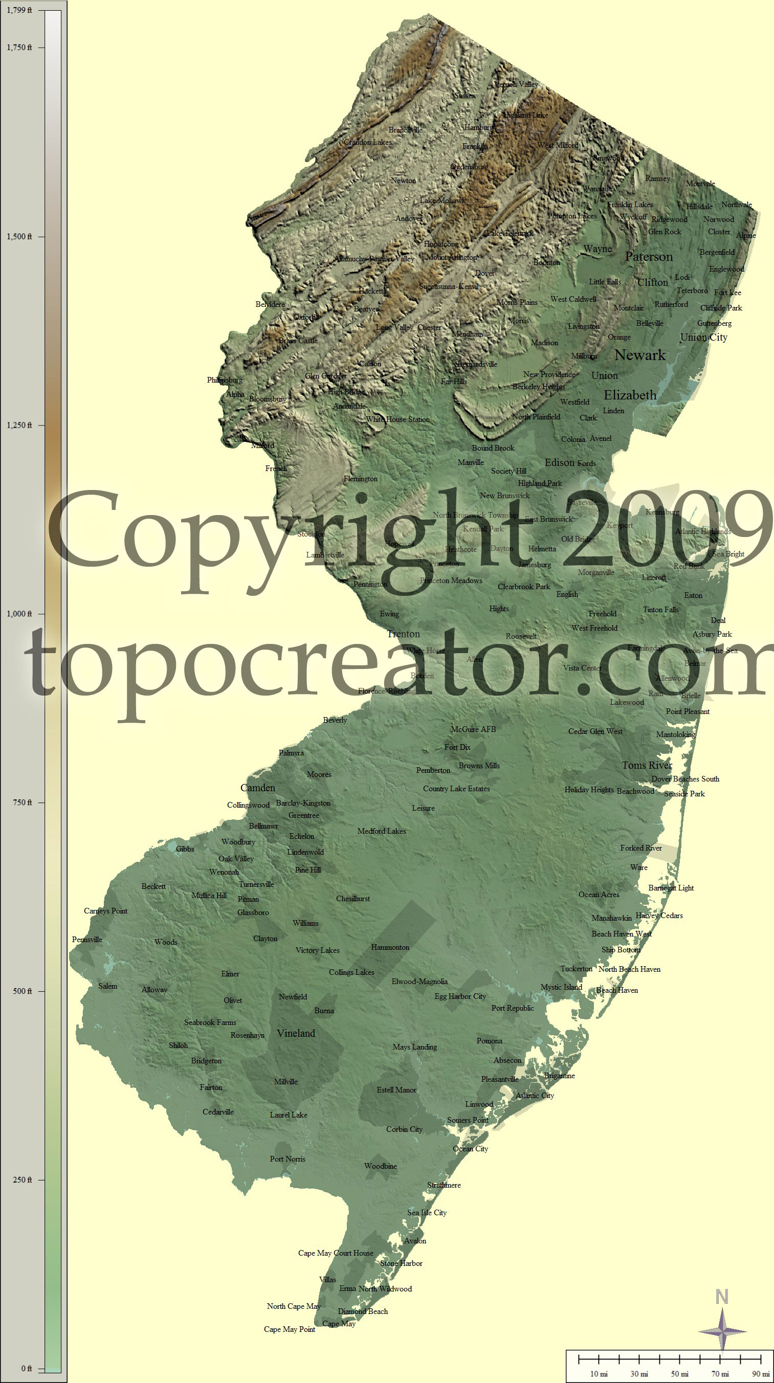 Terms of use. All maps displayed on this page or downloadable via a "download" link on this page are © 2009 topocreator.com released to the public under a Creative Commons Attribution-Share Alike license. Maps are available for purchase for a small fee for educational, personal, and commercial usage under an alternative license. The elevation data used in the creation of these maps has been obtained through the USGS, NOAA, and the US Census Bureau via the public domain.