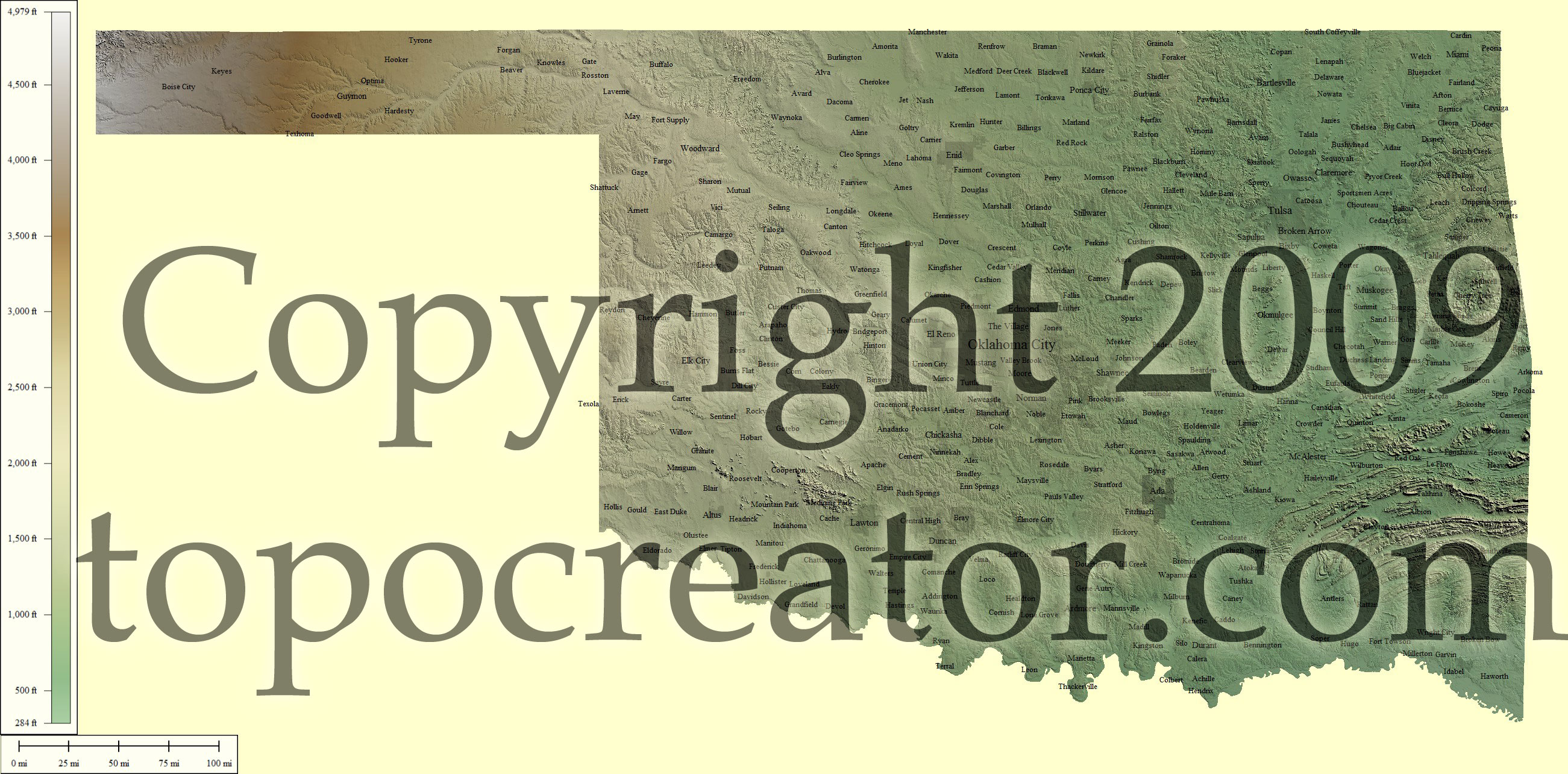 Terms of use. All maps displayed on this page or downloadable via a "download" link on this page are © 2009 topocreator.com released to the public under a Creative Commons Attribution-Share Alike license. Maps are available for purchase for a small fee for educational, personal, and commercial usage under an alternative license. The elevation data used in the creation of these maps has been obtained through the USGS, NOAA, and the US Census Bureau via the public domain.