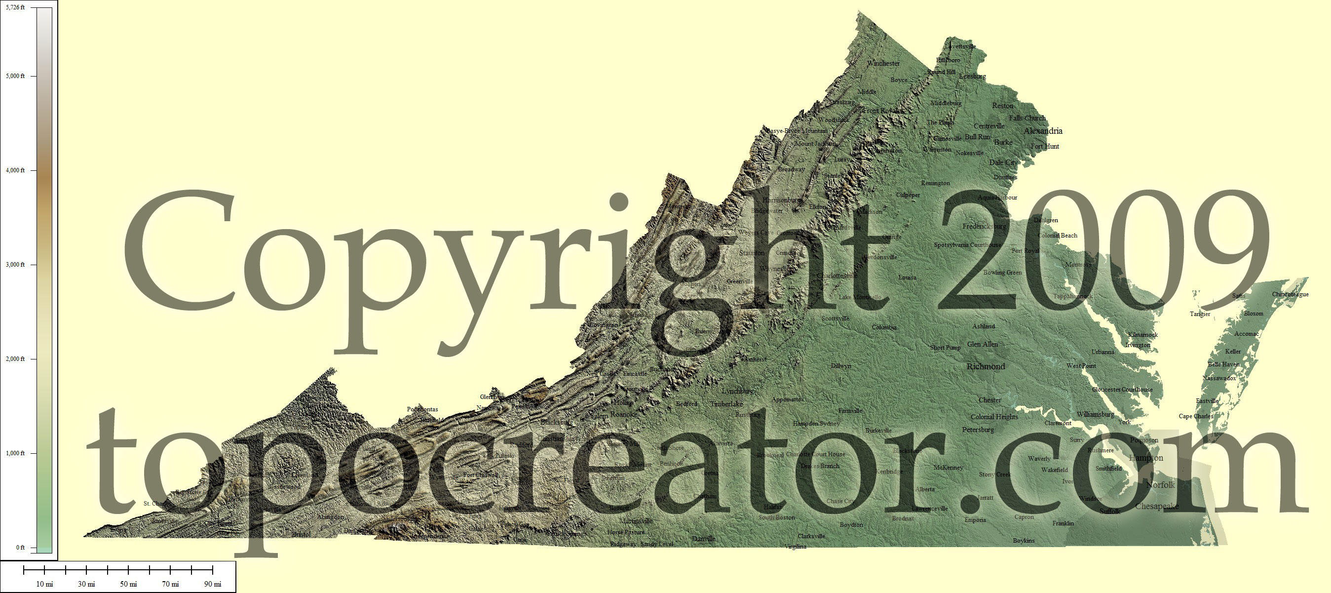 Terms of use. All maps displayed on this page or downloadable via a "download" link on this page are © 2009 topocreator.com released to the public under a Creative Commons Attribution-Share Alike license. Maps are available for purchase for a small fee for educational, personal, and commercial usage under an alternative license. The elevation data used in the creation of these maps has been obtained through the USGS, NOAA, and the US Census Bureau via the public domain.