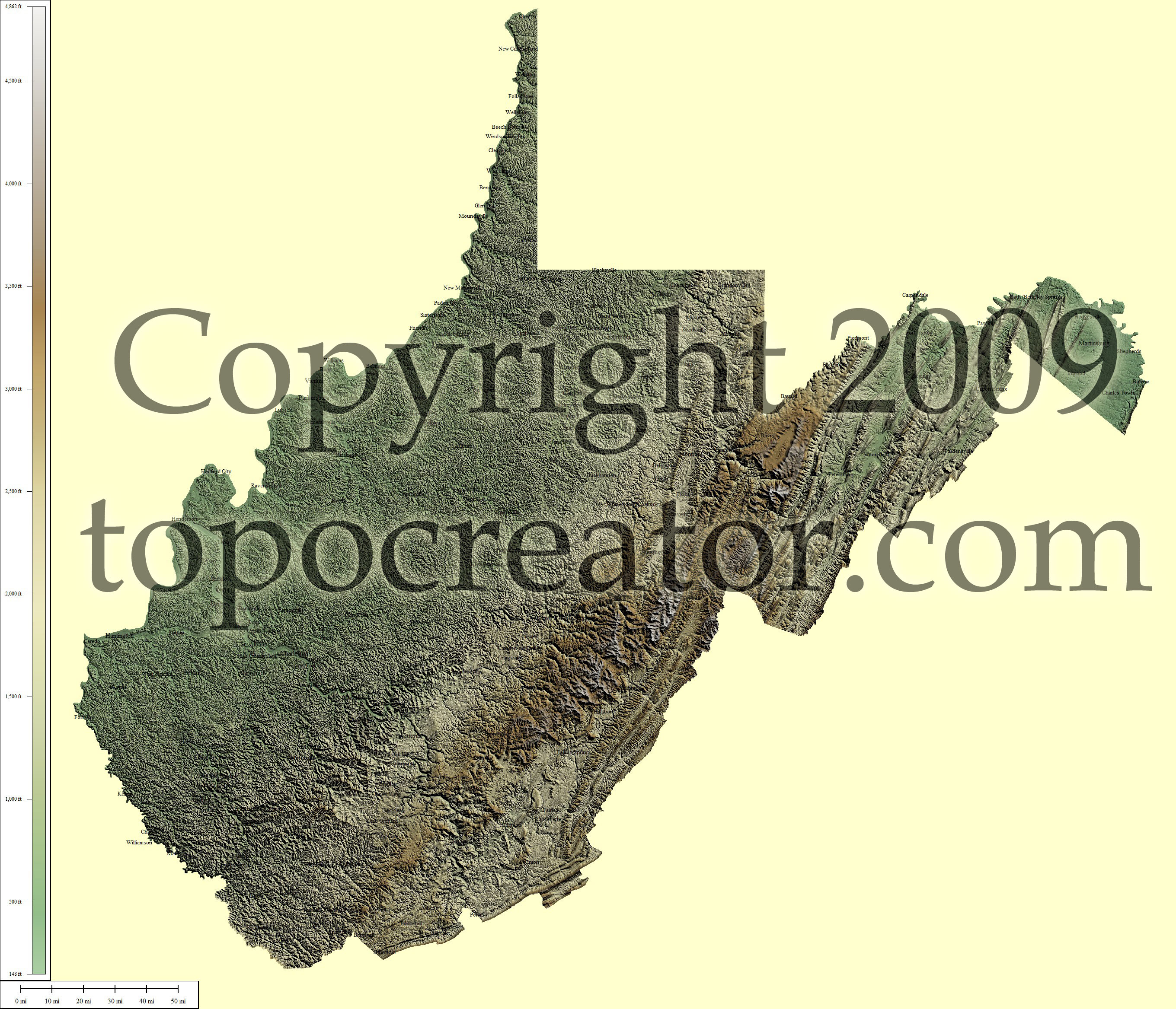 Terms of use. All maps displayed on this page or downloadable via a "download" link on this page are © 2009 topocreator.com released to the public under a Creative Commons Attribution-Share Alike license. Maps are available for purchase for a small fee for educational, personal, and commercial usage under an alternative license. The elevation data used in the creation of these maps has been obtained through the USGS, NOAA, and the US Census Bureau via the public domain.