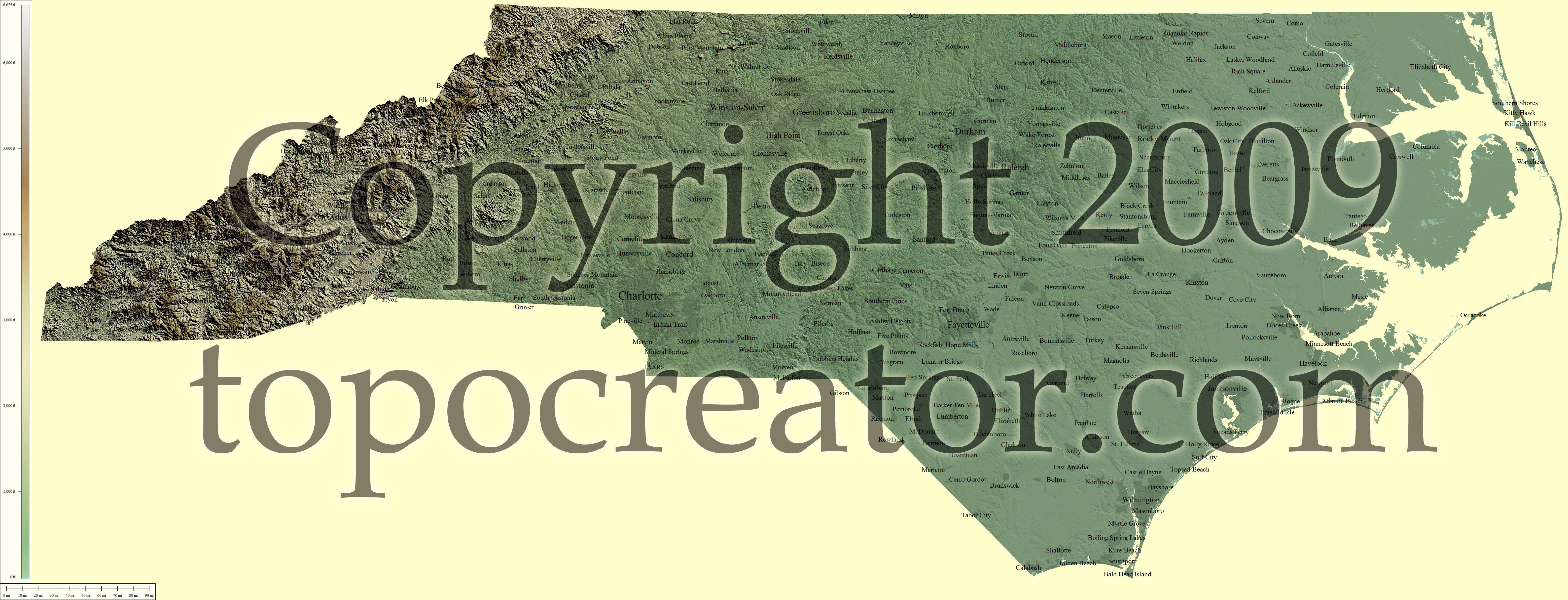 Terms of use. All maps displayed on this page or downloadable via a "download" link on this page are © 2009 topocreator.com released to the public under a Creative Commons Attribution-Share Alike license. Maps are available for purchase for a small fee for educational, personal, and commercial usage under an alternative license. The elevation data used in the creation of these maps has been obtained through the USGS, NOAA, and the US Census Bureau via the public domain.