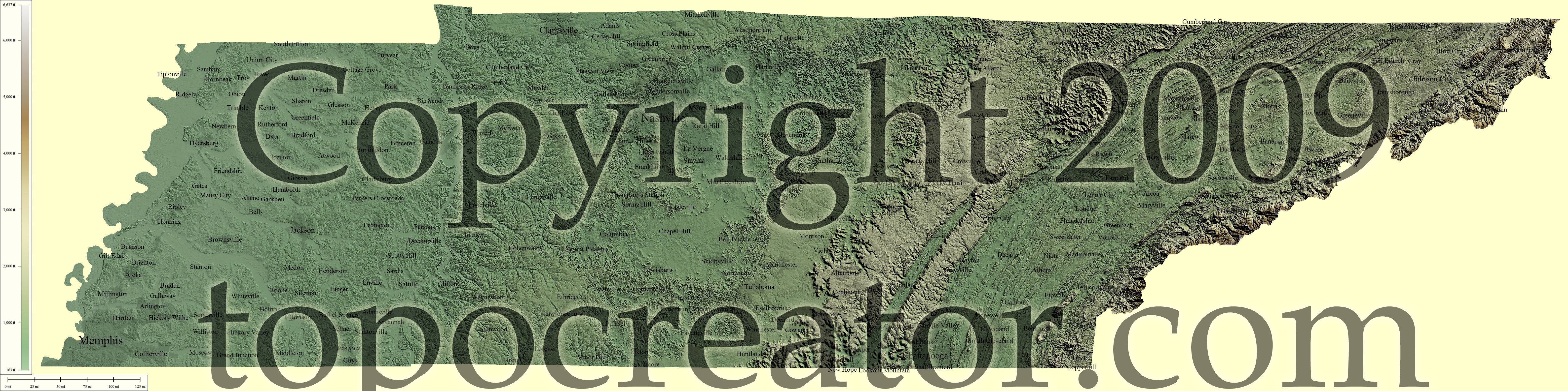 Terms of use. All maps displayed on this page or downloadable via a "download" link on this page are © 2009 topocreator.com released to the public under a Creative Commons Attribution-Share Alike license. Maps are available for purchase for a small fee for educational, personal, and commercial usage under an alternative license. The elevation data used in the creation of these maps has been obtained through the USGS, NOAA, and the US Census Bureau via the public domain.