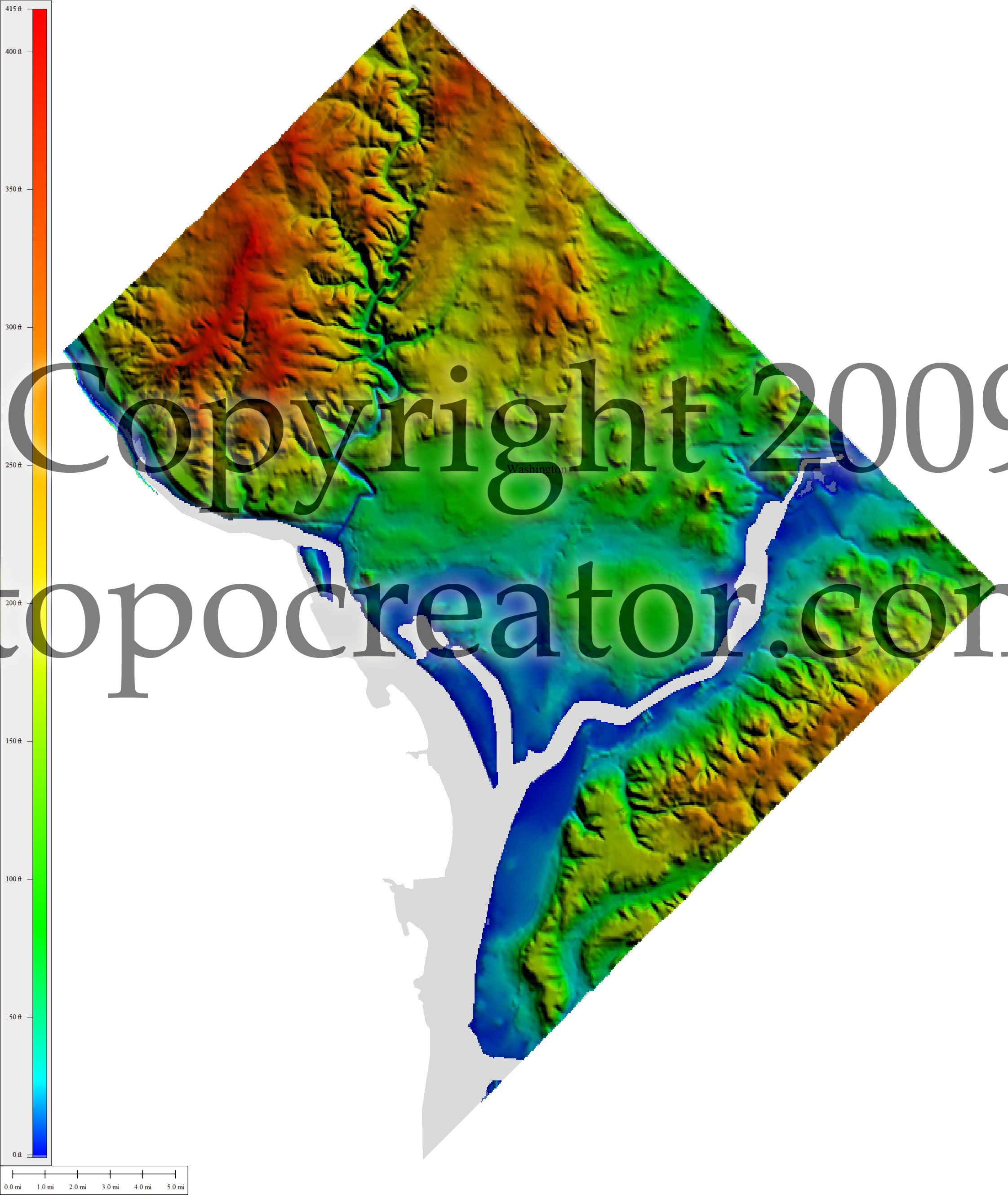 Terms of use. All maps displayed on this page or downloadable via a "download" link on this page are © 2009 topocreator.com released to the public under a Creative Commons Attribution-Share Alike license. Maps are available for purchase for a small fee for educational, personal, and commercial usage under an alternative license. The elevation data used in the creation of these maps has been obtained through the USGS, NOAA, and the US Census Bureau via the public domain.