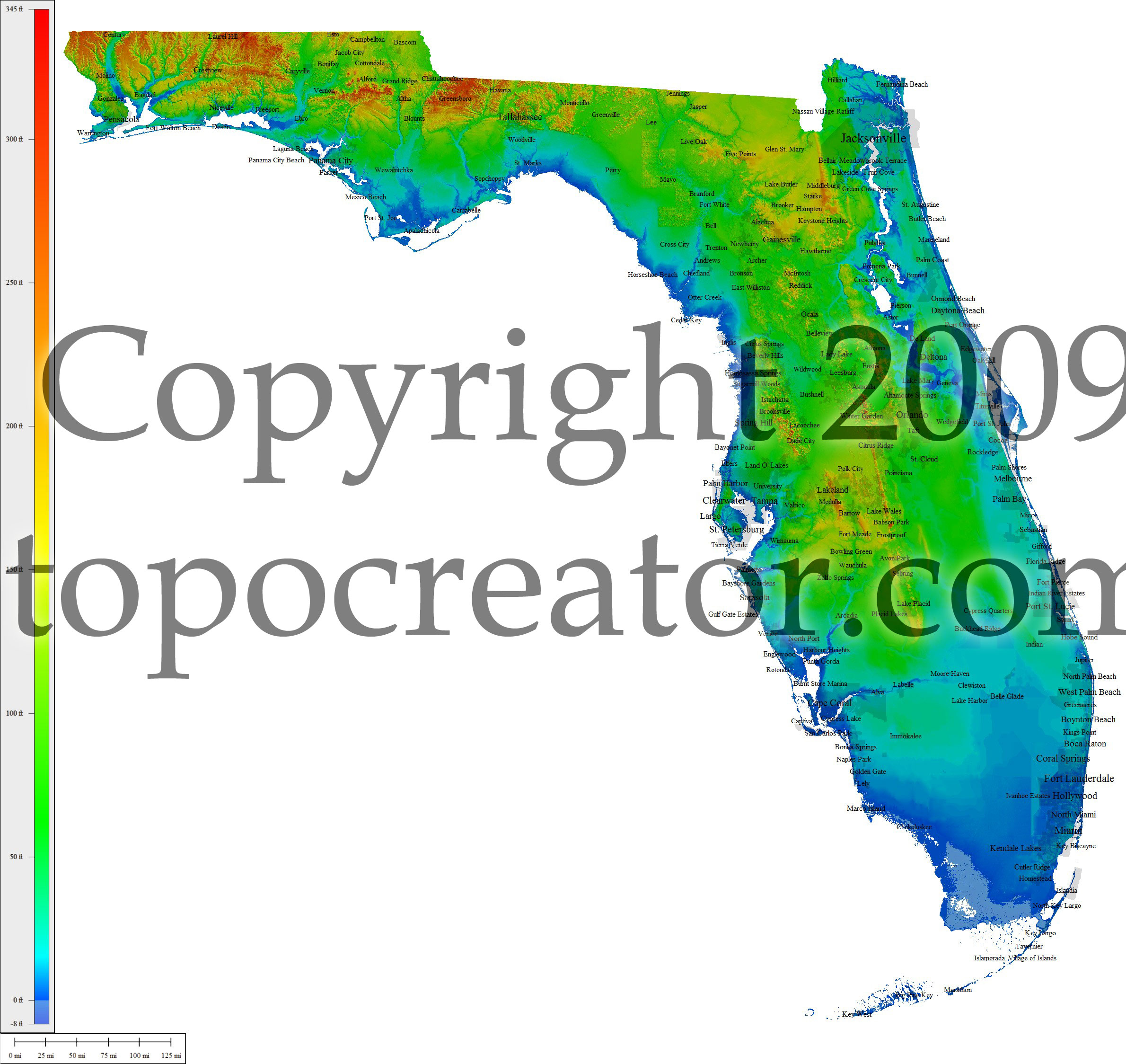 Terms of use. All maps displayed on this page or downloadable via a "download" link on this page are © 2009 topocreator.com released to the public under a Creative Commons Attribution-Share Alike license. Maps are available for purchase for a small fee for educational, personal, and commercial usage under an alternative license. The elevation data used in the creation of these maps has been obtained through the USGS, NOAA, and the US Census Bureau via the public domain.