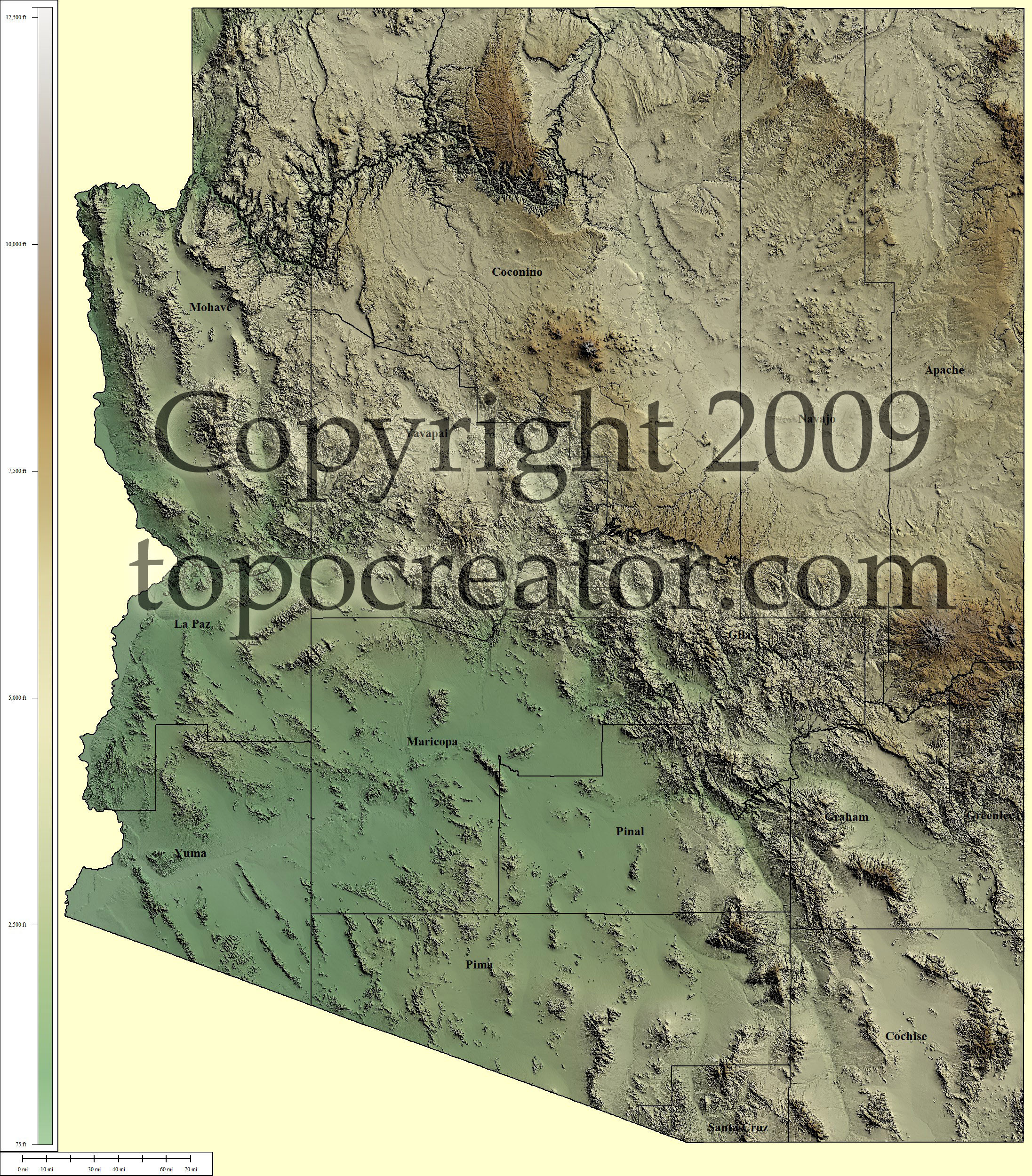 Terms of use. All maps displayed on this page or downloadable via a "download" link on this page are © 2009 topocreator.com released to the public under a Creative Commons Attribution-Share Alike license. Maps are available for purchase for a small fee for educational, personal, and commercial usage under an alternative license. The elevation data used in the creation of these maps has been obtained through the USGS, NOAA, and the US Census Bureau via the public domain.
