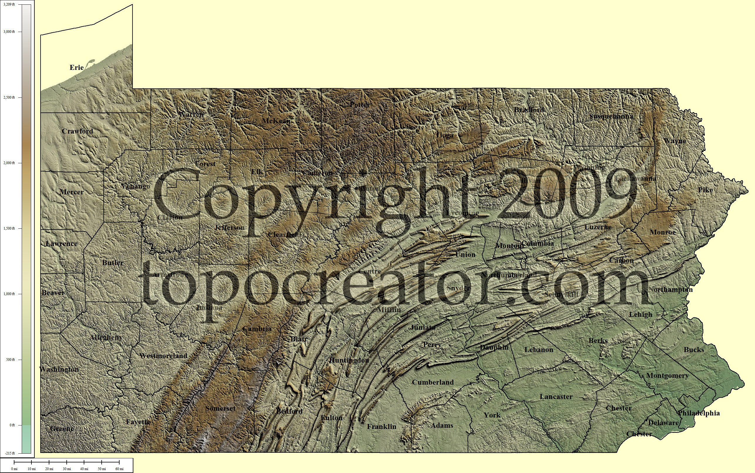 Terms of use. All maps displayed on this page or downloadable via a "download" link on this page are © 2009 topocreator.com released to the public under a Creative Commons Attribution-Share Alike license. Maps are available for purchase for a small fee for educational, personal, and commercial usage under an alternative license. The elevation data used in the creation of these maps has been obtained through the USGS, NOAA, and the US Census Bureau via the public domain.