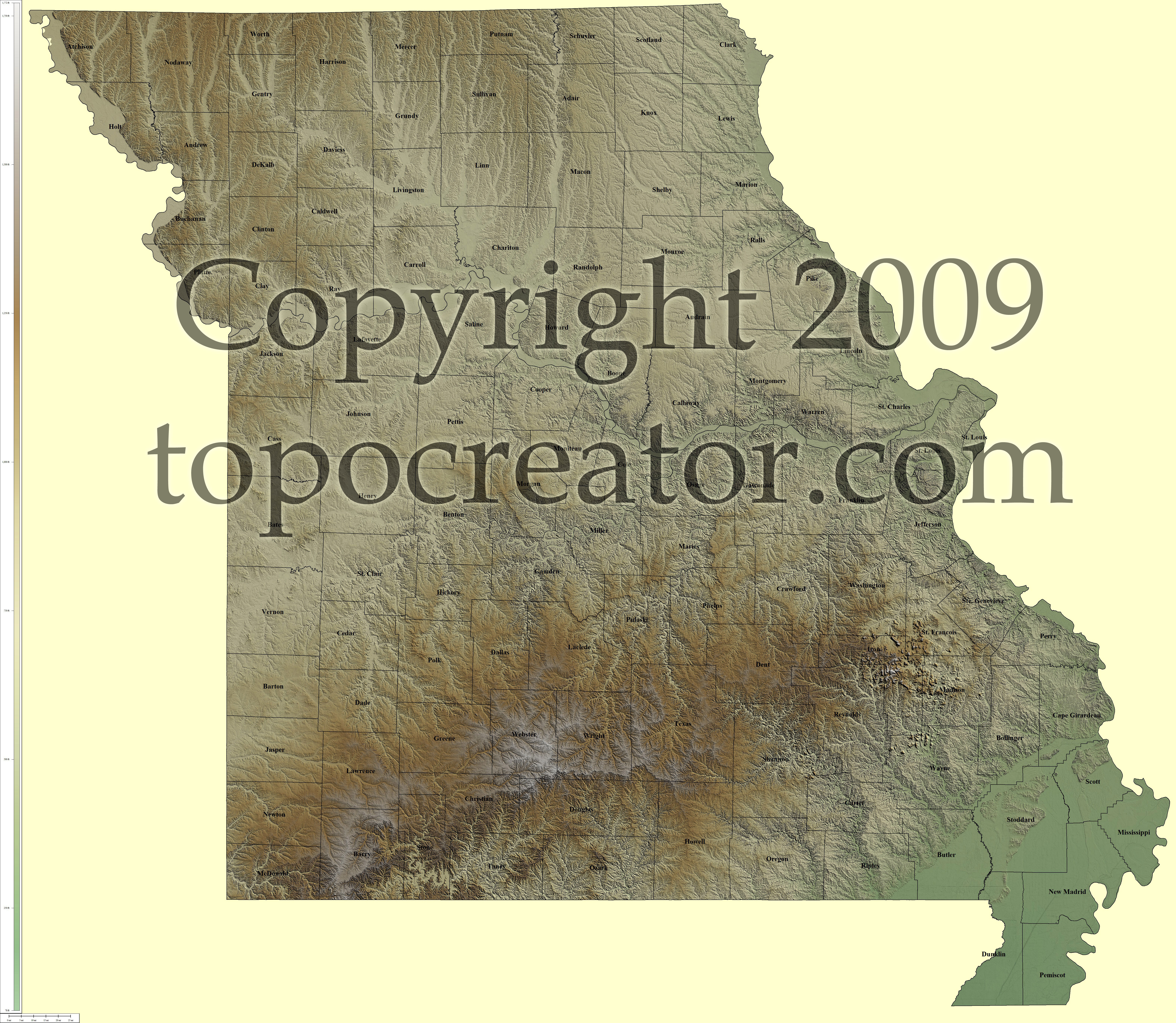 Terms of use. All maps displayed on this page or downloadable via a "download" link on this page are © 2009 topocreator.com released to the public under a Creative Commons Attribution-Share Alike license. Maps are available for purchase for a small fee for educational, personal, and commercial usage under an alternative license. The elevation data used in the creation of these maps has been obtained through the USGS, NOAA, and the US Census Bureau via the public domain.