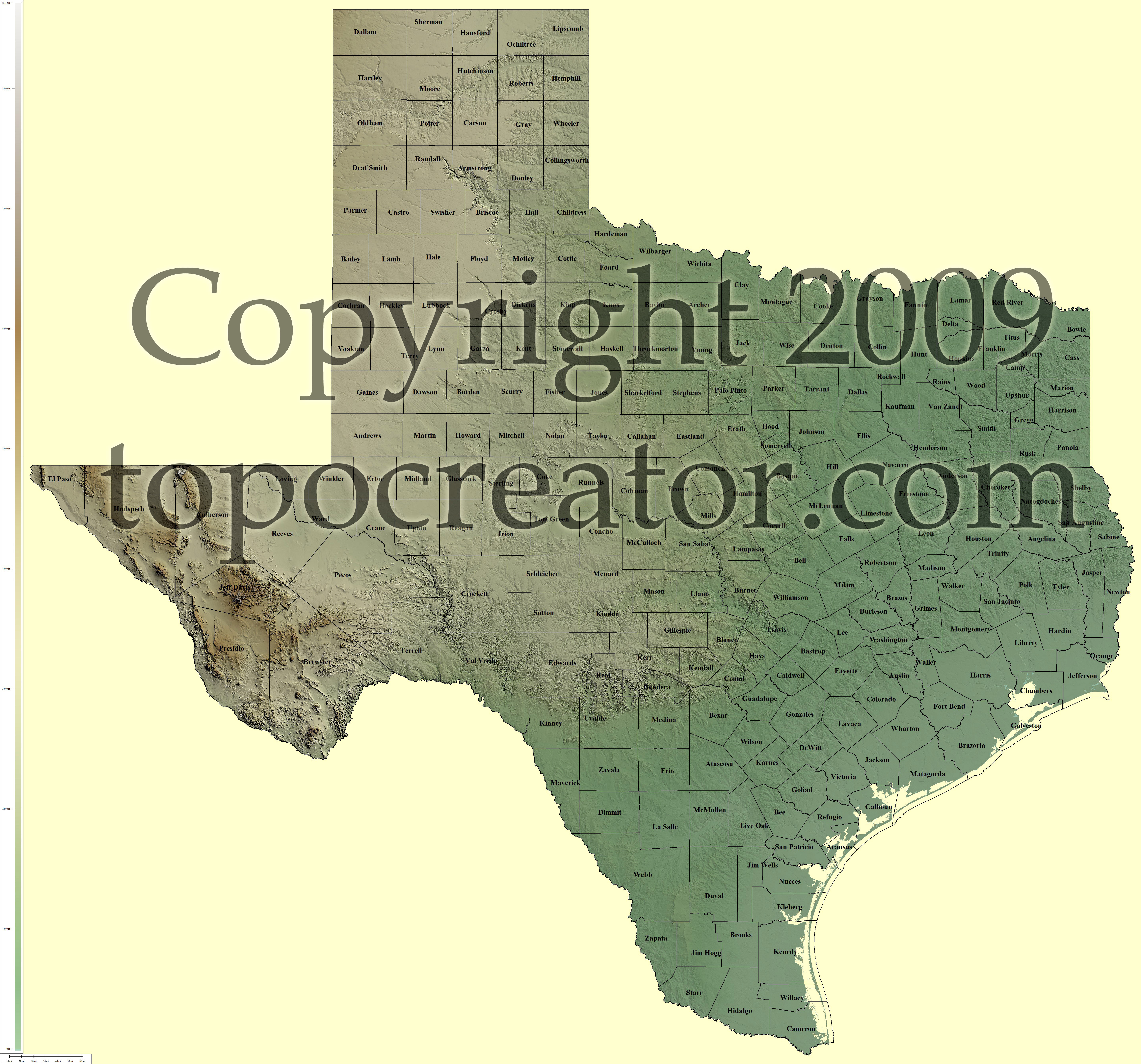 Terms of use. All maps displayed on this page or downloadable via a "download" link on this page are © 2009 topocreator.com released to the public under a Creative Commons Attribution-Share Alike license. Maps are available for purchase for a small fee for educational, personal, and commercial usage under an alternative license. The elevation data used in the creation of these maps has been obtained through the USGS, NOAA, and the US Census Bureau via the public domain.