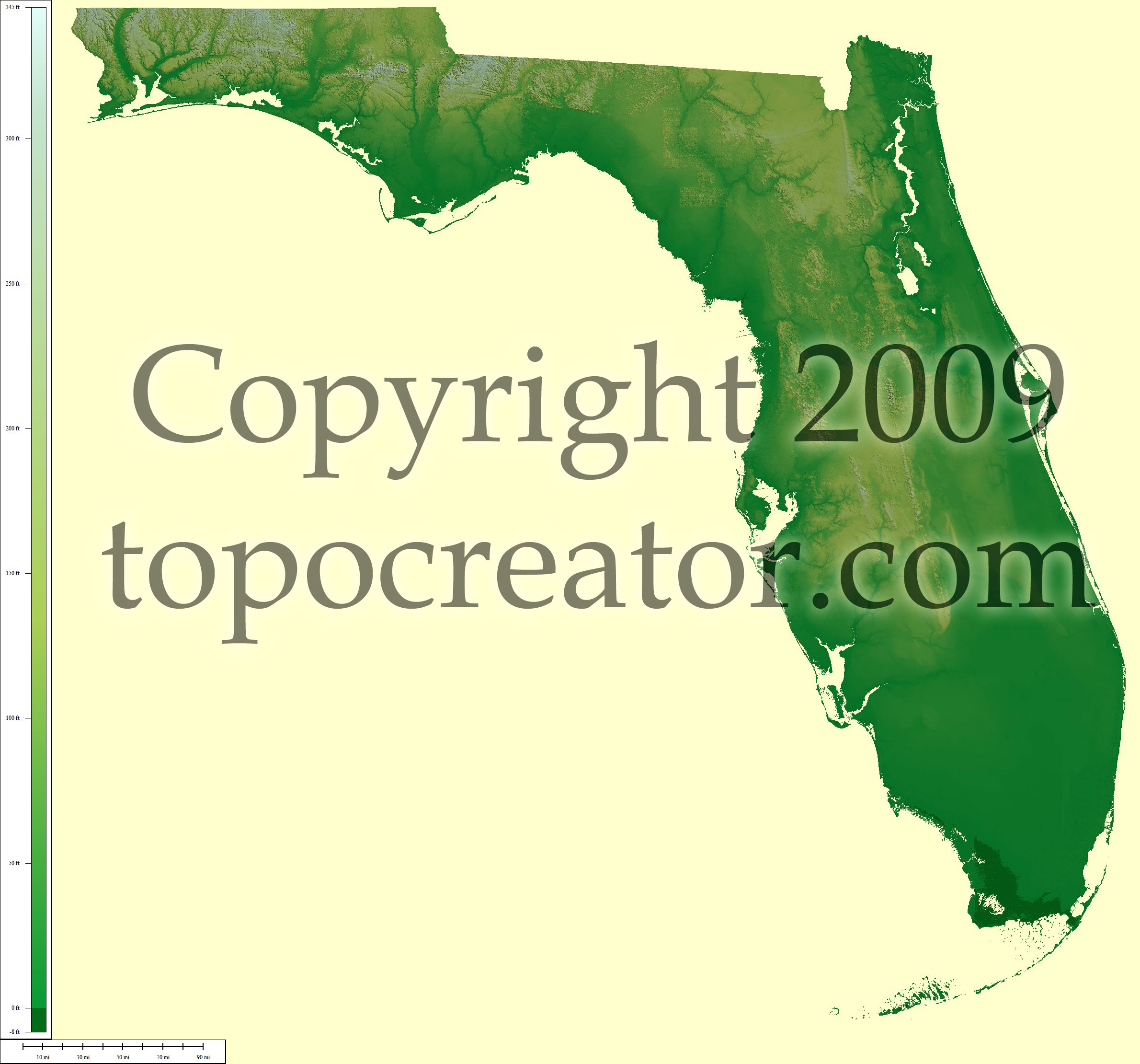 Terms of use. All maps displayed on this page or downloadable via a "download" link on this page are © 2009 topocreator.com released to the public under a Creative Commons Attribution-Share Alike license. Maps are available for purchase for a small fee for educational, personal, and commercial usage under an alternative license. The elevation data used in the creation of these maps has been obtained through the USGS, NOAA, and the US Census Bureau via the public domain.