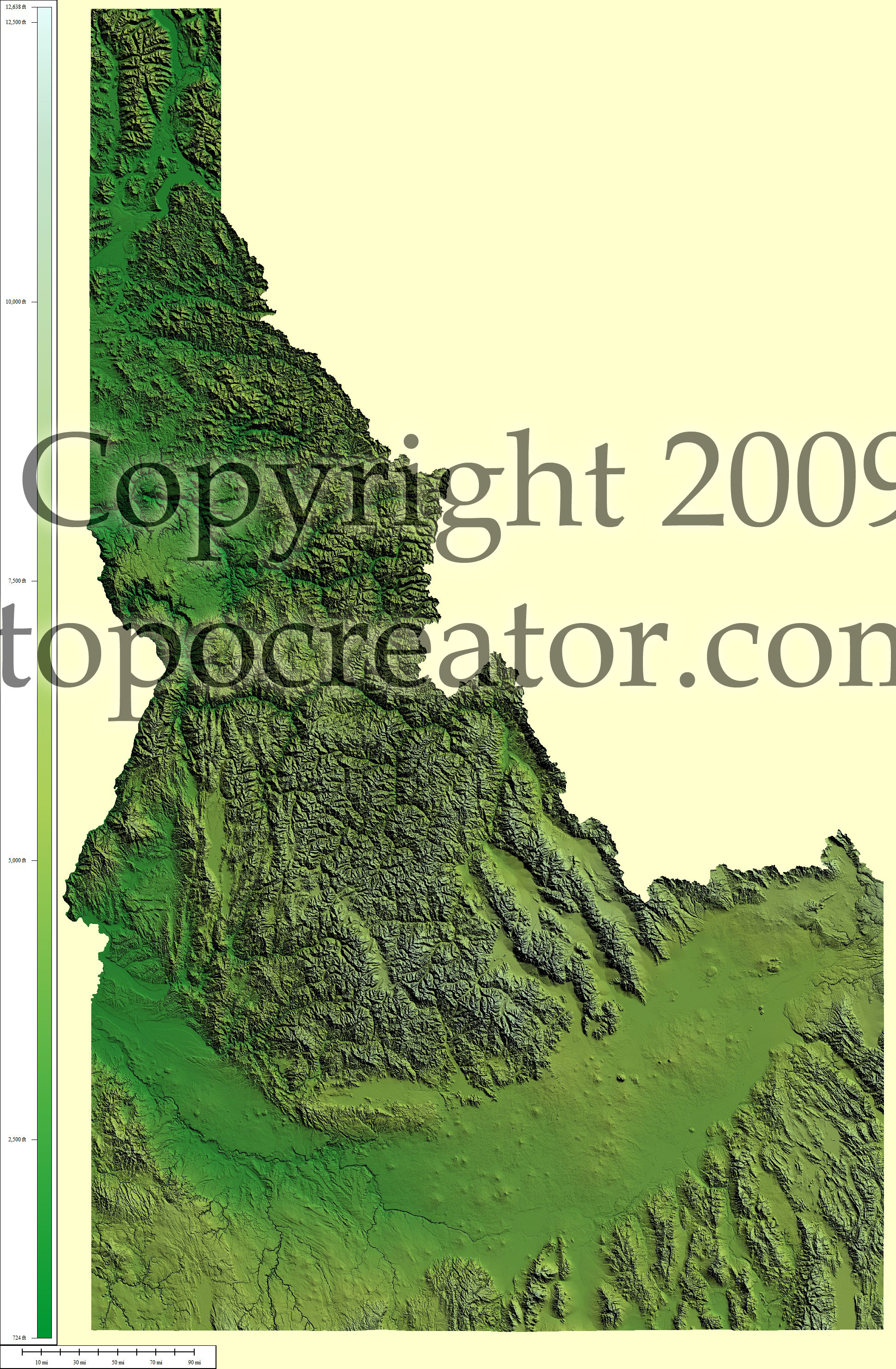 Terms of use. All maps displayed on this page or downloadable via a "download" link on this page are © 2009 topocreator.com released to the public under a Creative Commons Attribution-Share Alike license. Maps are available for purchase for a small fee for educational, personal, and commercial usage under an alternative license. The elevation data used in the creation of these maps has been obtained through the USGS, NOAA, and the US Census Bureau via the public domain.