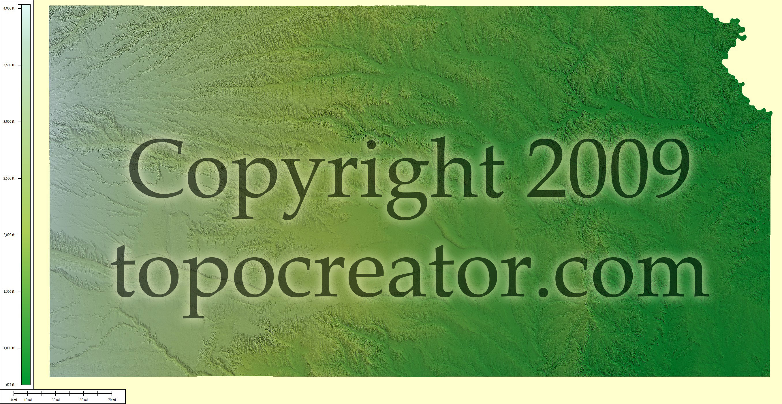 Terms of use. All maps displayed on this page or downloadable via a "download" link on this page are © 2009 topocreator.com released to the public under a Creative Commons Attribution-Share Alike license. Maps are available for purchase for a small fee for educational, personal, and commercial usage under an alternative license. The elevation data used in the creation of these maps has been obtained through the USGS, NOAA, and the US Census Bureau via the public domain.