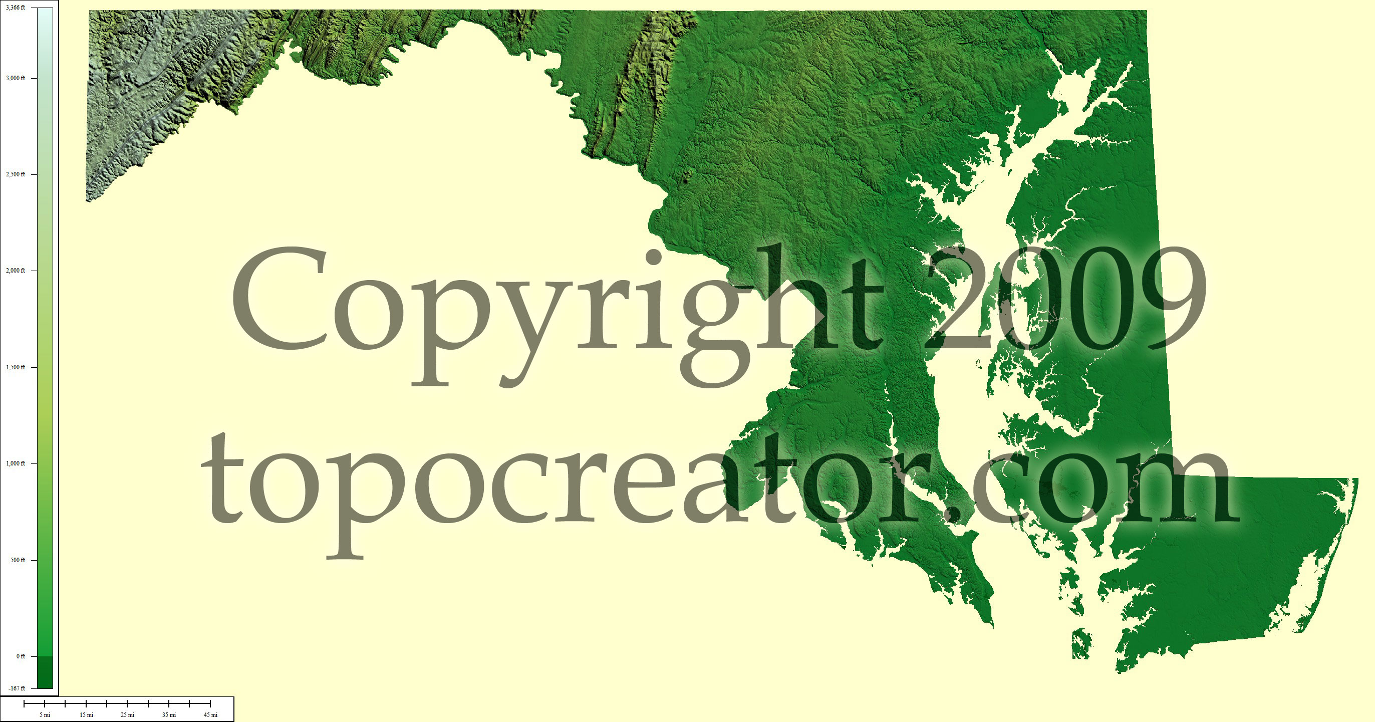 Terms of use. All maps displayed on this page or downloadable via a "download" link on this page are © 2009 topocreator.com released to the public under a Creative Commons Attribution-Share Alike license. Maps are available for purchase for a small fee for educational, personal, and commercial usage under an alternative license. The elevation data used in the creation of these maps has been obtained through the USGS, NOAA, and the US Census Bureau via the public domain.