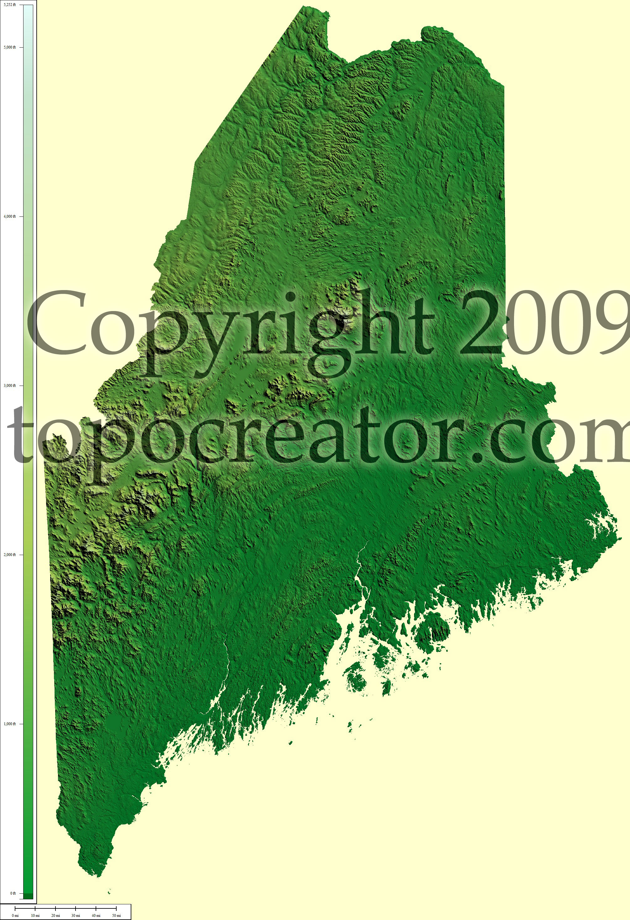 Terms of use. All maps displayed on this page or downloadable via a "download" link on this page are © 2009 topocreator.com released to the public under a Creative Commons Attribution-Share Alike license. Maps are available for purchase for a small fee for educational, personal, and commercial usage under an alternative license. The elevation data used in the creation of these maps has been obtained through the USGS, NOAA, and the US Census Bureau via the public domain.