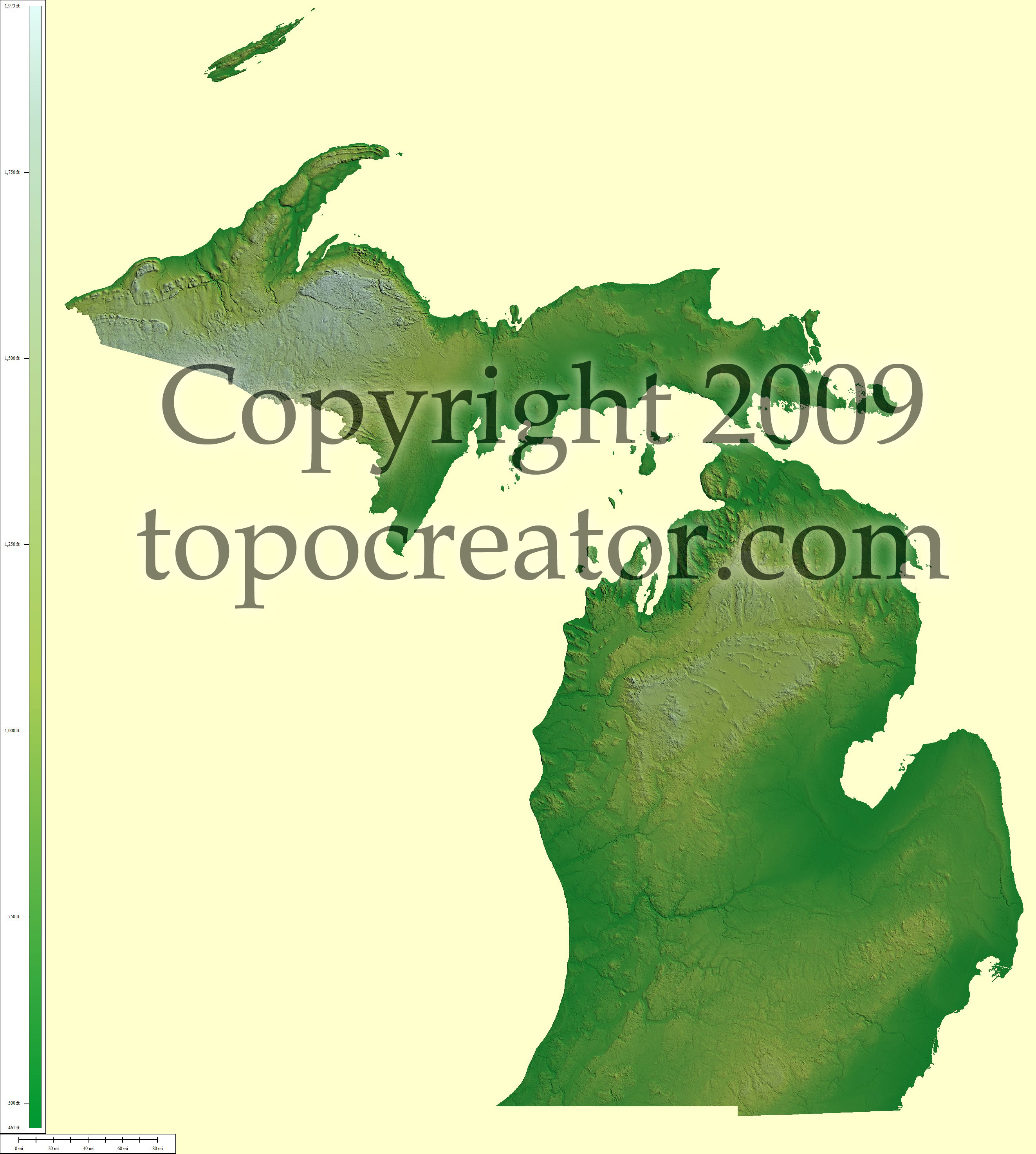Terms of use. All maps displayed on this page or downloadable via a "download" link on this page are © 2009 topocreator.com released to the public under a Creative Commons Attribution-Share Alike license. Maps are available for purchase for a small fee for educational, personal, and commercial usage under an alternative license. The elevation data used in the creation of these maps has been obtained through the USGS, NOAA, and the US Census Bureau via the public domain.