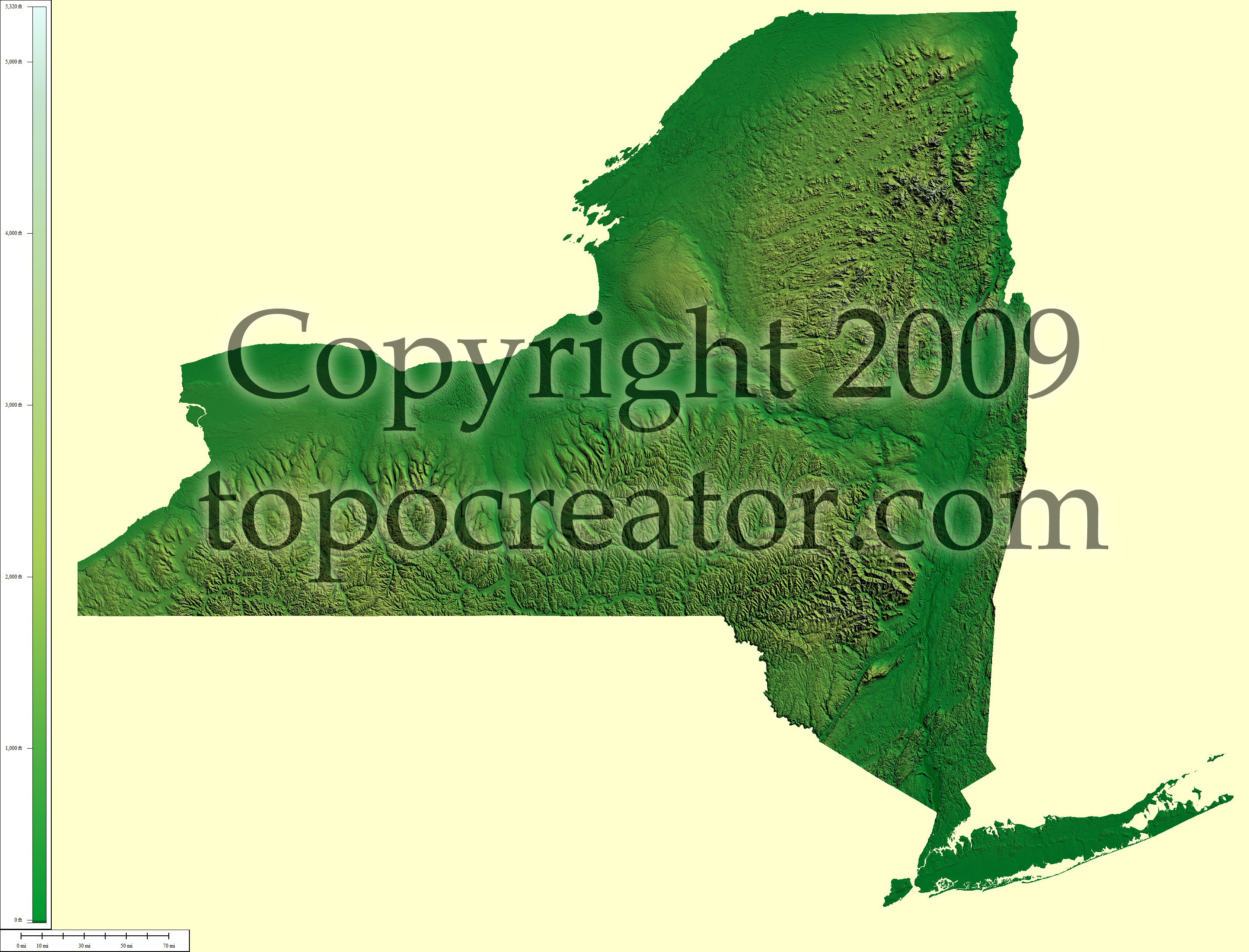 Terms of use. All maps displayed on this page or downloadable via a "download" link on this page are © 2009 topocreator.com released to the public under a Creative Commons Attribution-Share Alike license. Maps are available for purchase for a small fee for educational, personal, and commercial usage under an alternative license. The elevation data used in the creation of these maps has been obtained through the USGS, NOAA, and the US Census Bureau via the public domain.