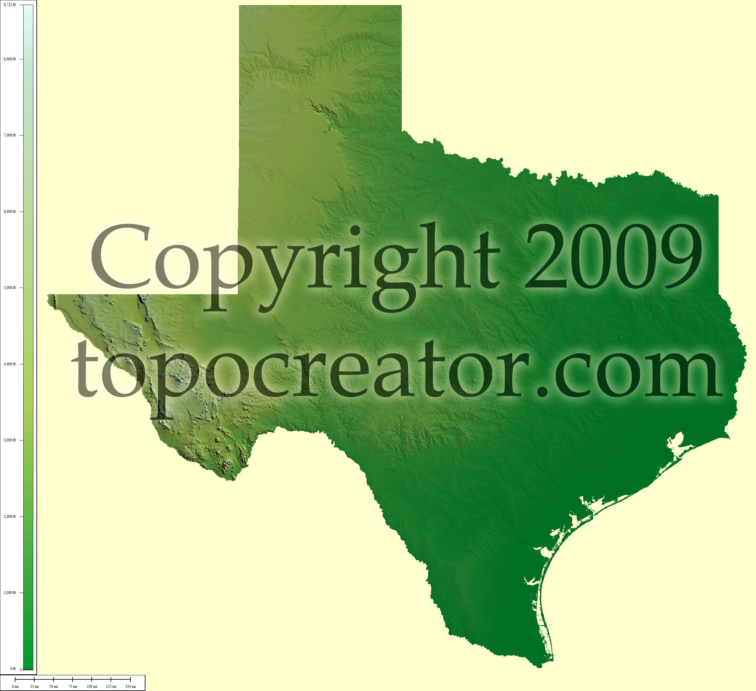 Terms of use. All maps displayed on this page or downloadable via a "download" link on this page are © 2009 topocreator.com released to the public under a Creative Commons Attribution-Share Alike license. Maps are available for purchase for a small fee for educational, personal, and commercial usage under an alternative license. The elevation data used in the creation of these maps has been obtained through the USGS, NOAA, and the US Census Bureau via the public domain.