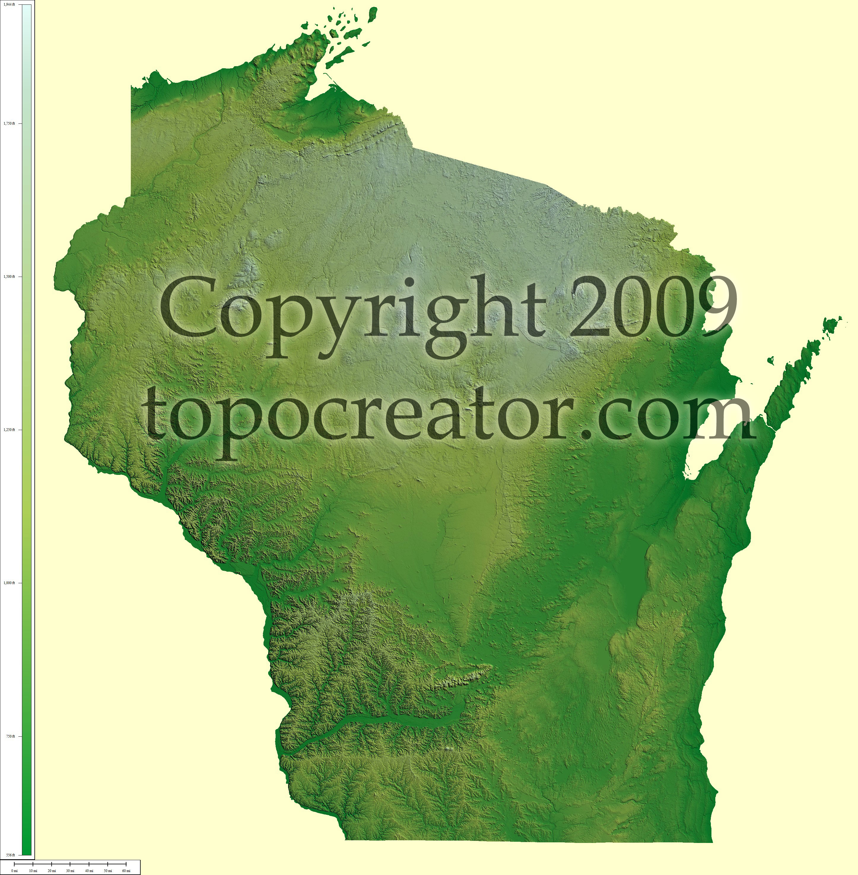 Terms of use. All maps displayed on this page or downloadable via a "download" link on this page are © 2009 topocreator.com released to the public under a Creative Commons Attribution-Share Alike license. Maps are available for purchase for a small fee for educational, personal, and commercial usage under an alternative license. The elevation data used in the creation of these maps has been obtained through the USGS, NOAA, and the US Census Bureau via the public domain.
