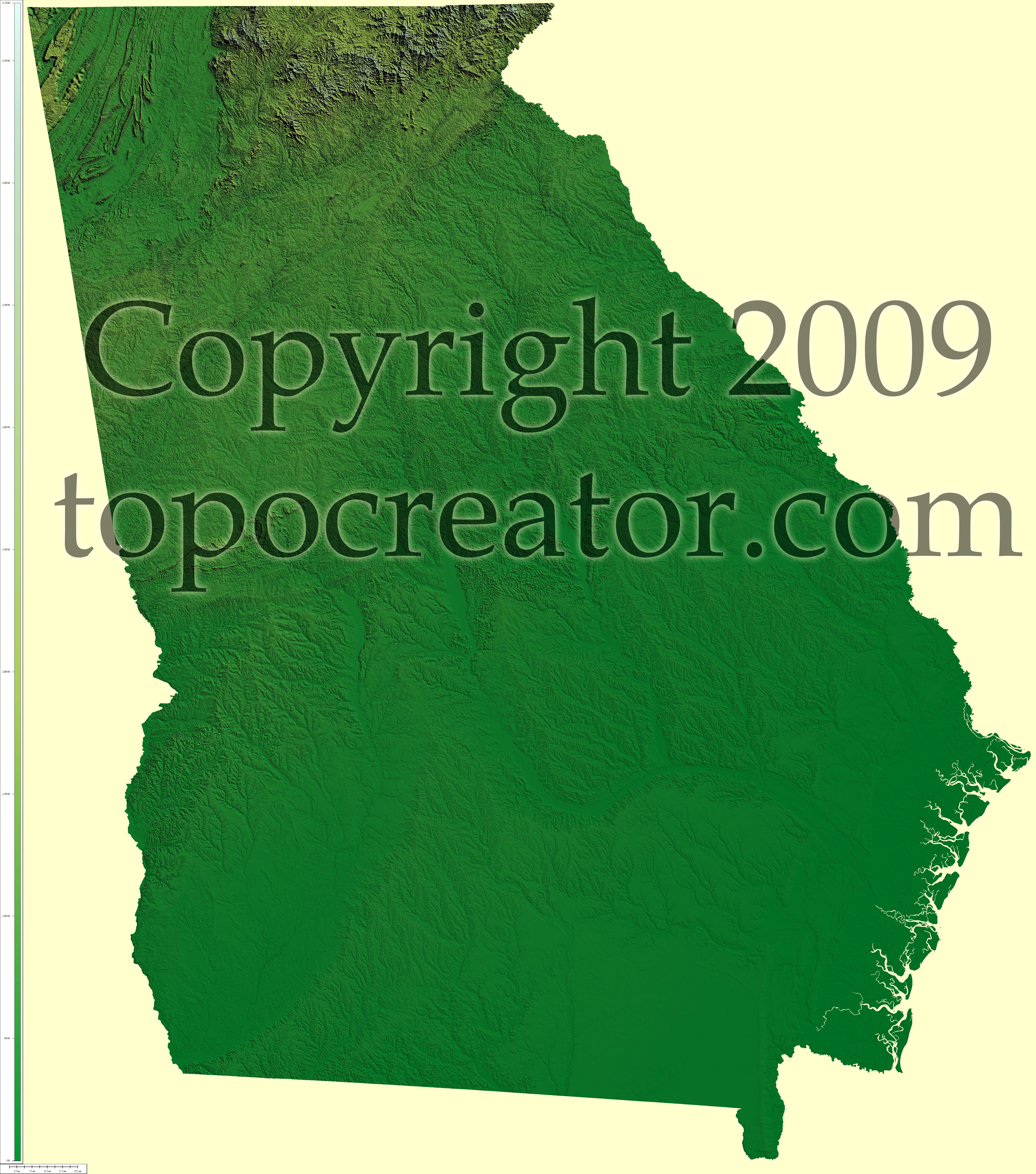 Terms of use. All maps displayed on this page or downloadable via a "download" link on this page are © 2009 topocreator.com released to the public under a Creative Commons Attribution-Share Alike license. Maps are available for purchase for a small fee for educational, personal, and commercial usage under an alternative license. The elevation data used in the creation of these maps has been obtained through the USGS, NOAA, and the US Census Bureau via the public domain.