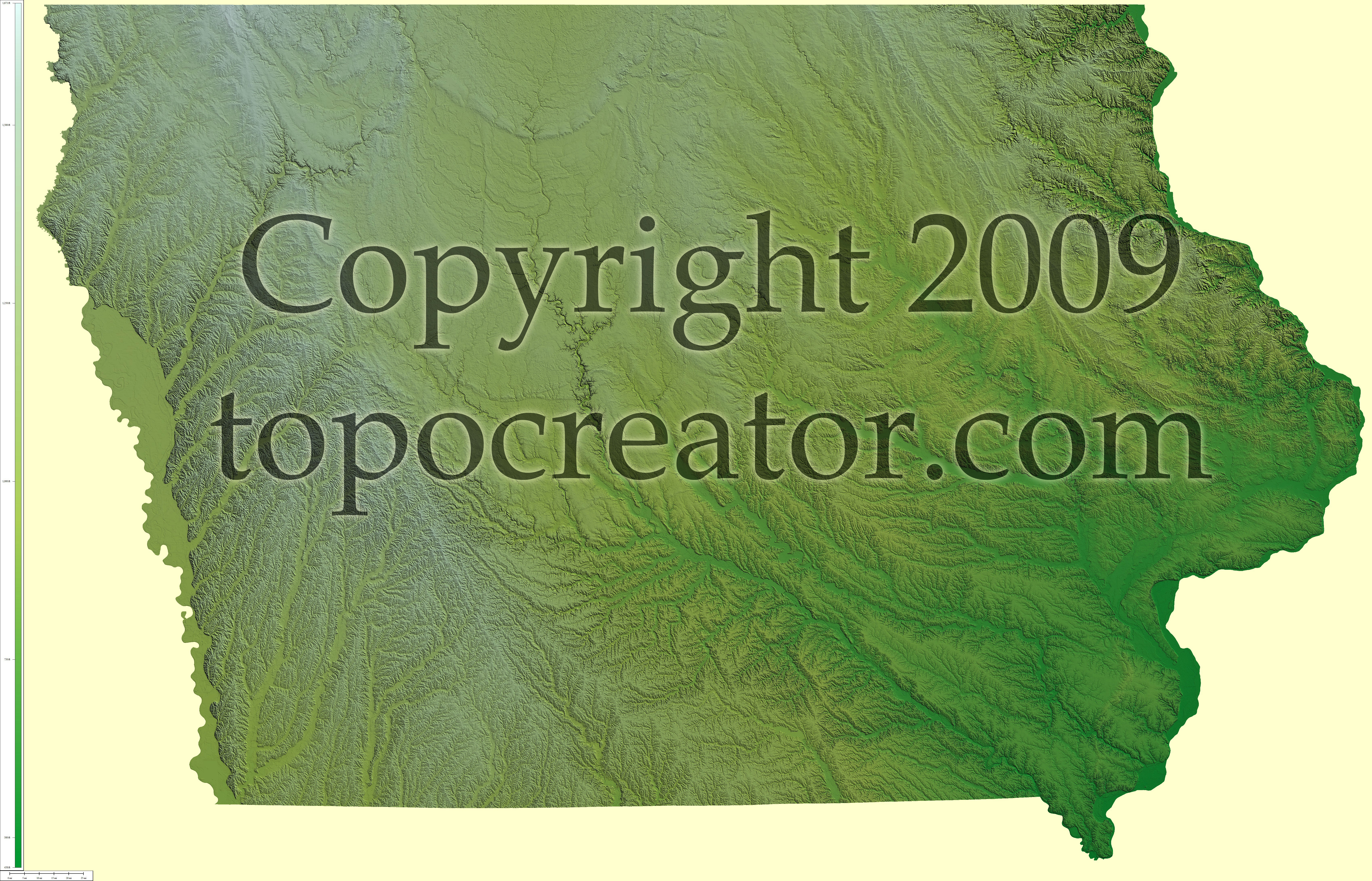 Terms of use. All maps displayed on this page or downloadable via a "download" link on this page are © 2009 topocreator.com released to the public under a Creative Commons Attribution-Share Alike license. Maps are available for purchase for a small fee for educational, personal, and commercial usage under an alternative license. The elevation data used in the creation of these maps has been obtained through the USGS, NOAA, and the US Census Bureau via the public domain.