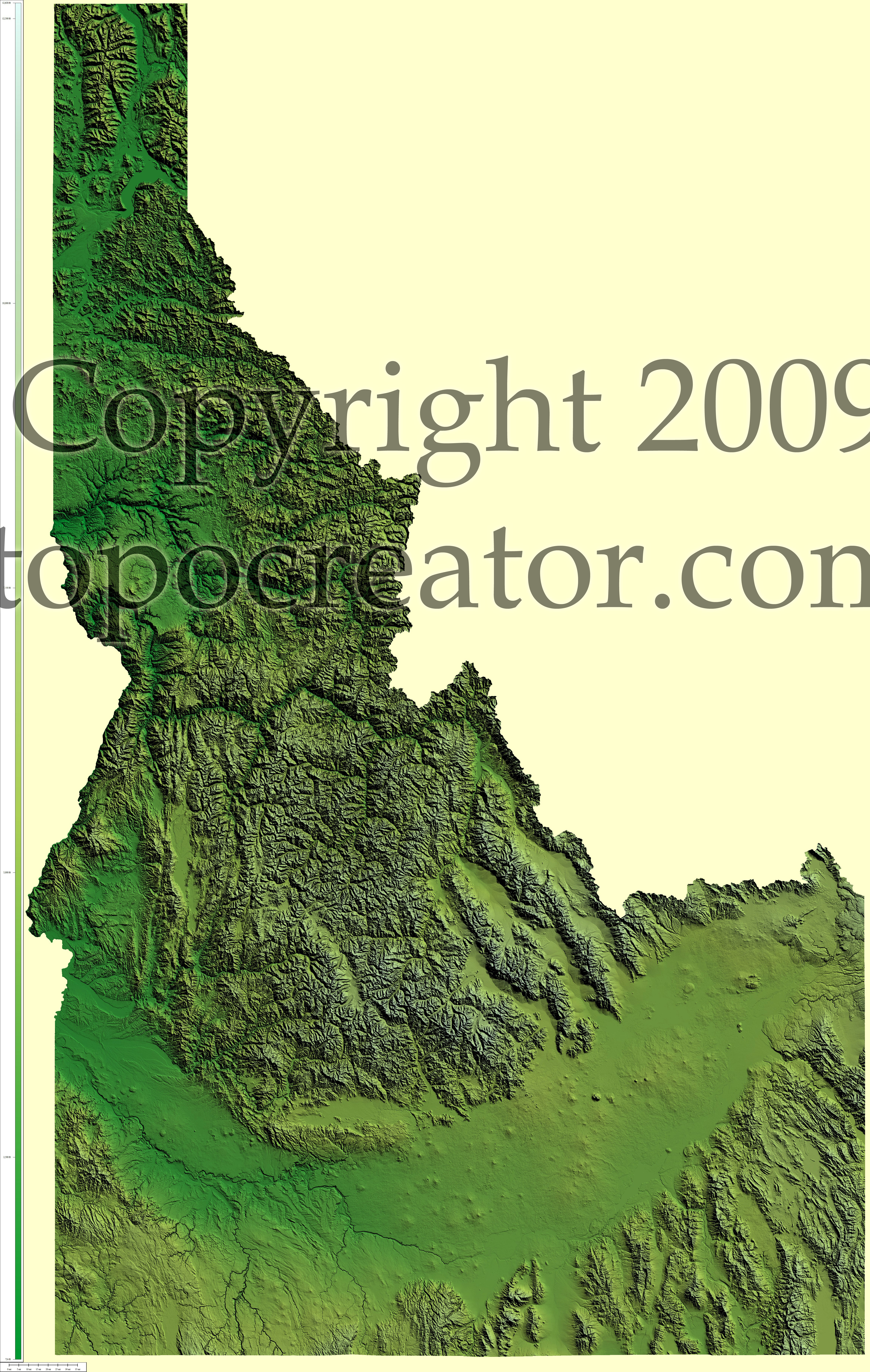 Terms of use. All maps displayed on this page or downloadable via a "download" link on this page are © 2009 topocreator.com released to the public under a Creative Commons Attribution-Share Alike license. Maps are available for purchase for a small fee for educational, personal, and commercial usage under an alternative license. The elevation data used in the creation of these maps has been obtained through the USGS, NOAA, and the US Census Bureau via the public domain.