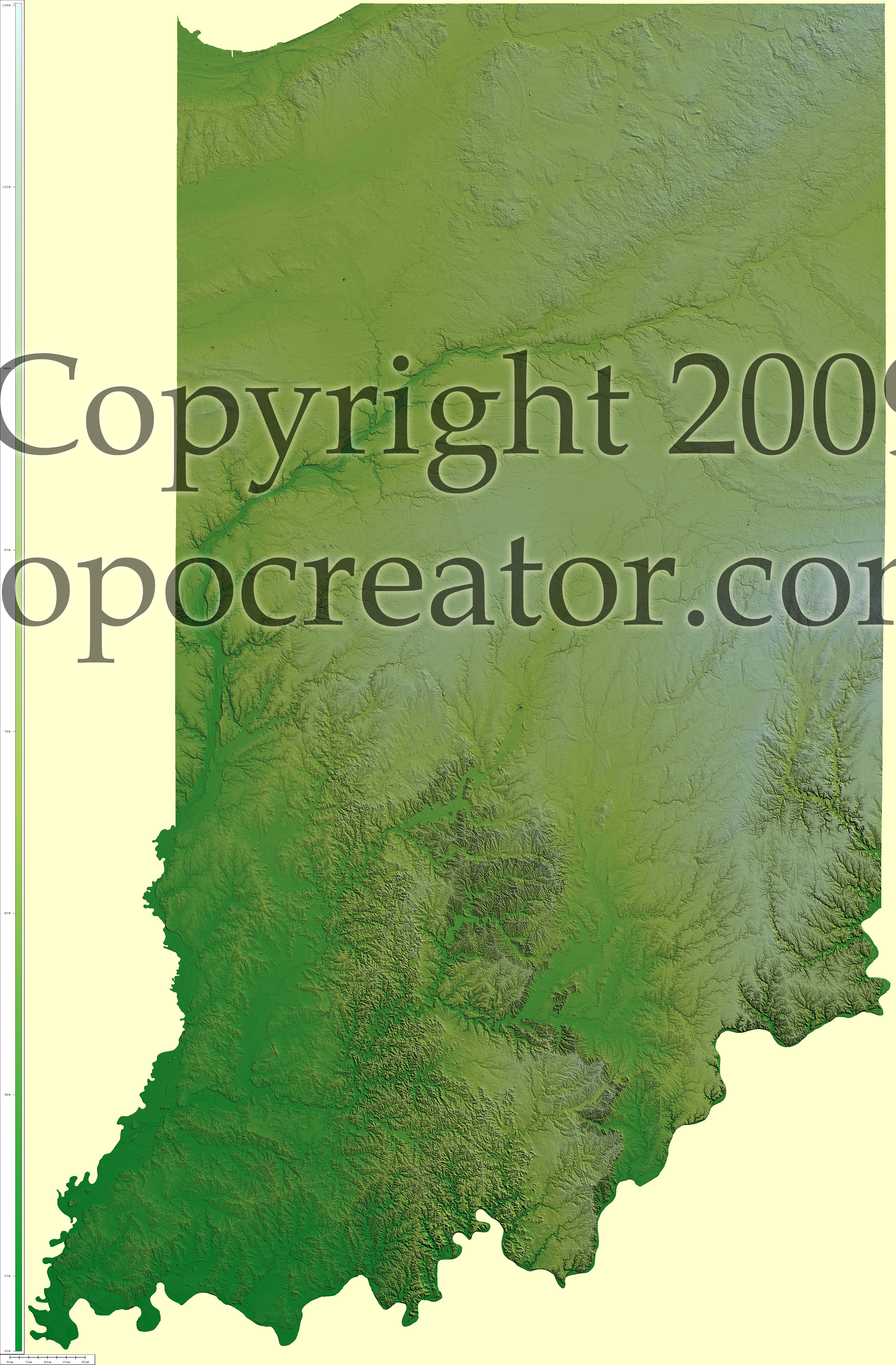 Terms of use. All maps displayed on this page or downloadable via a "download" link on this page are © 2009 topocreator.com released to the public under a Creative Commons Attribution-Share Alike license. Maps are available for purchase for a small fee for educational, personal, and commercial usage under an alternative license. The elevation data used in the creation of these maps has been obtained through the USGS, NOAA, and the US Census Bureau via the public domain.