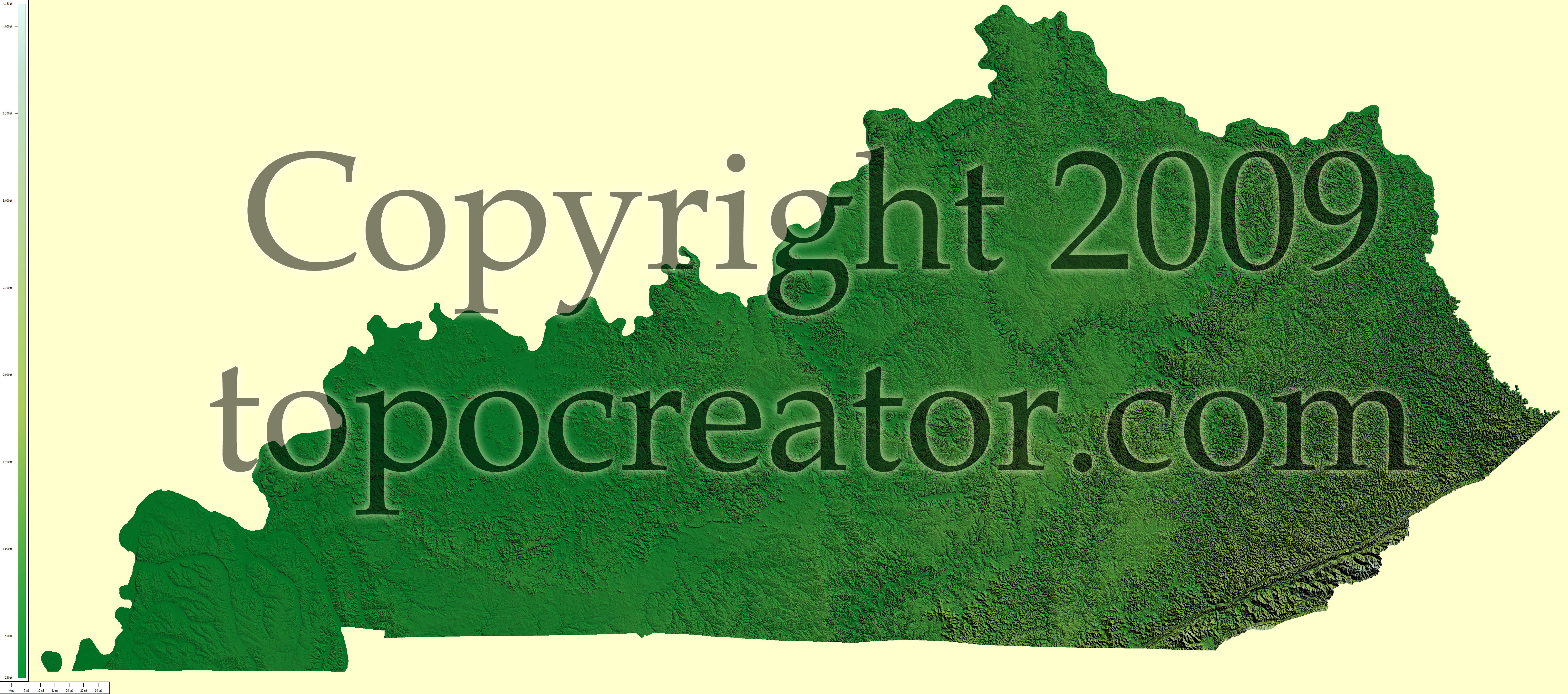 Terms of use. All maps displayed on this page or downloadable via a "download" link on this page are © 2009 topocreator.com released to the public under a Creative Commons Attribution-Share Alike license. Maps are available for purchase for a small fee for educational, personal, and commercial usage under an alternative license. The elevation data used in the creation of these maps has been obtained through the USGS, NOAA, and the US Census Bureau via the public domain.