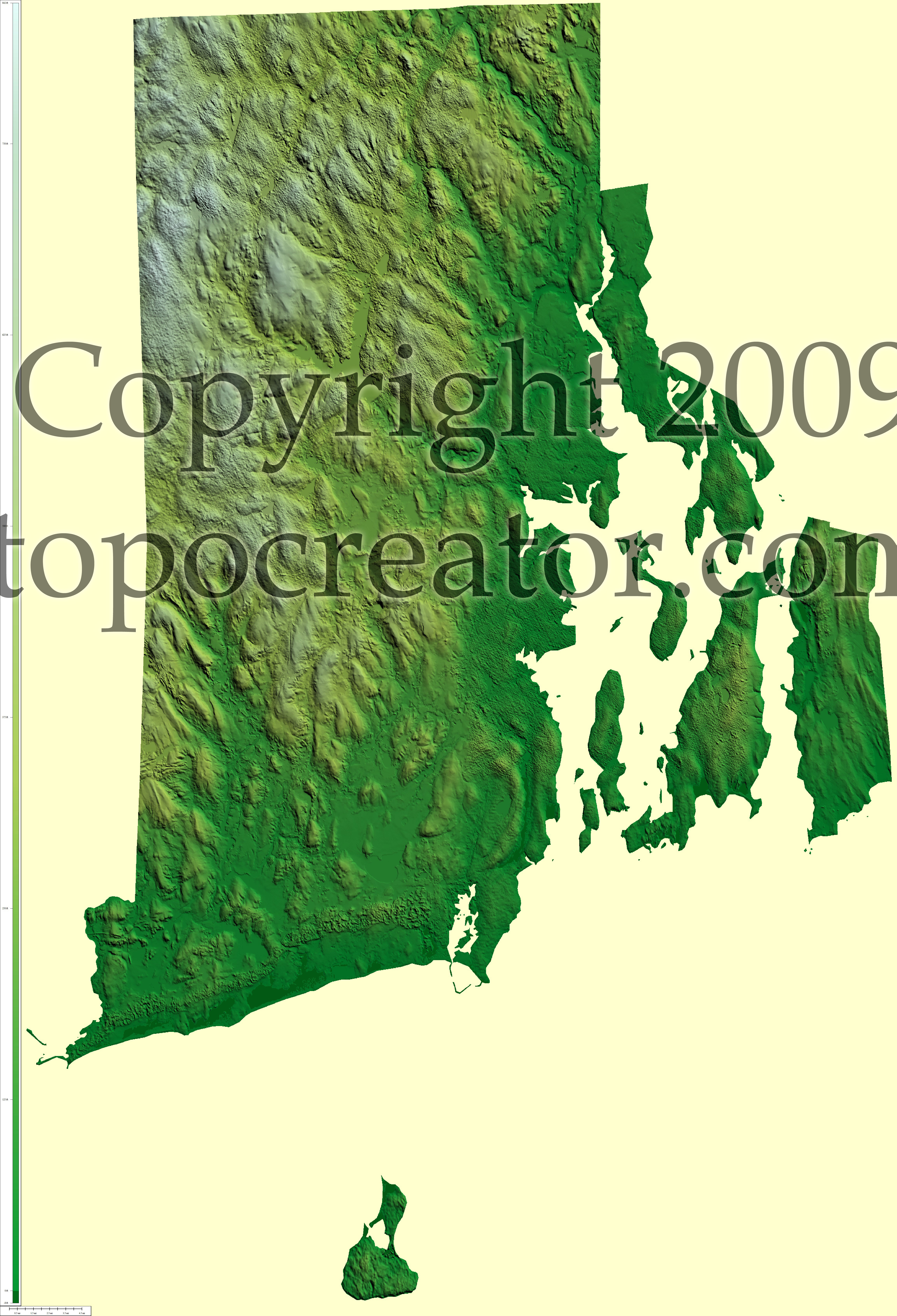 Terms of use. All maps displayed on this page or downloadable via a "download" link on this page are © 2009 topocreator.com released to the public under a Creative Commons Attribution-Share Alike license. Maps are available for purchase for a small fee for educational, personal, and commercial usage under an alternative license. The elevation data used in the creation of these maps has been obtained through the USGS, NOAA, and the US Census Bureau via the public domain.