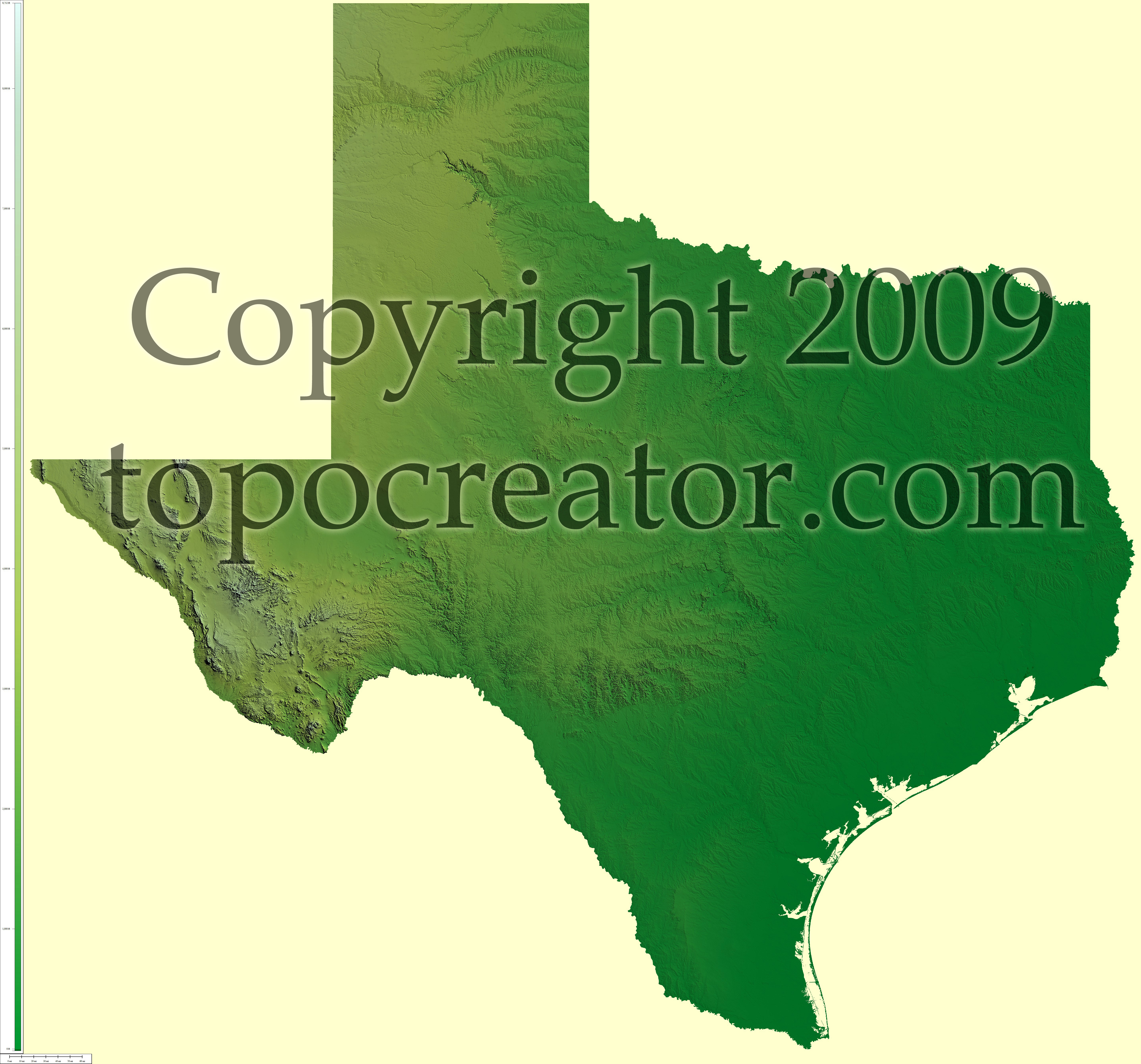 Terms of use. All maps displayed on this page or downloadable via a "download" link on this page are © 2009 topocreator.com released to the public under a Creative Commons Attribution-Share Alike license. Maps are available for purchase for a small fee for educational, personal, and commercial usage under an alternative license. The elevation data used in the creation of these maps has been obtained through the USGS, NOAA, and the US Census Bureau via the public domain.