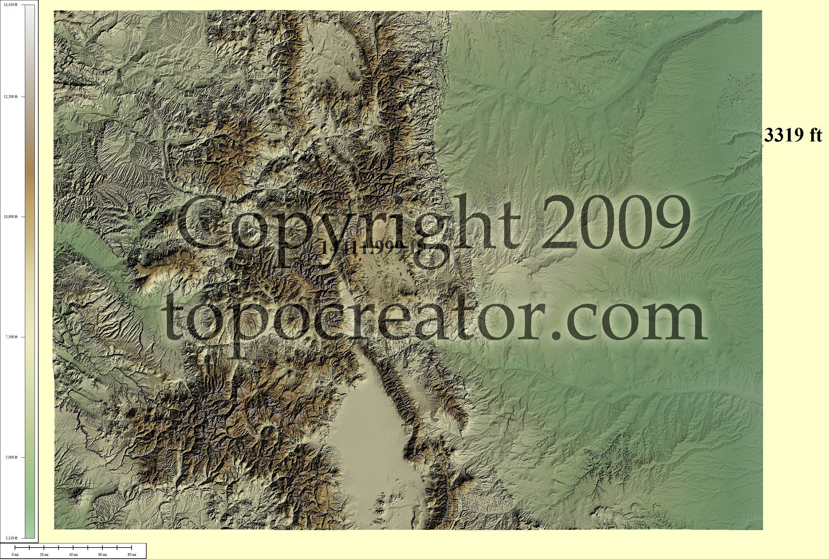 Terms of use. All maps displayed on this page or downloadable via a "download" link on this page are © 2009 topocreator.com released to the public under a Creative Commons Attribution-Share Alike license. Maps are available for purchase for a small fee for educational, personal, and commercial usage under an alternative license. The elevation data used in the creation of these maps has been obtained through the USGS, NOAA, and the US Census Bureau via the public domain.