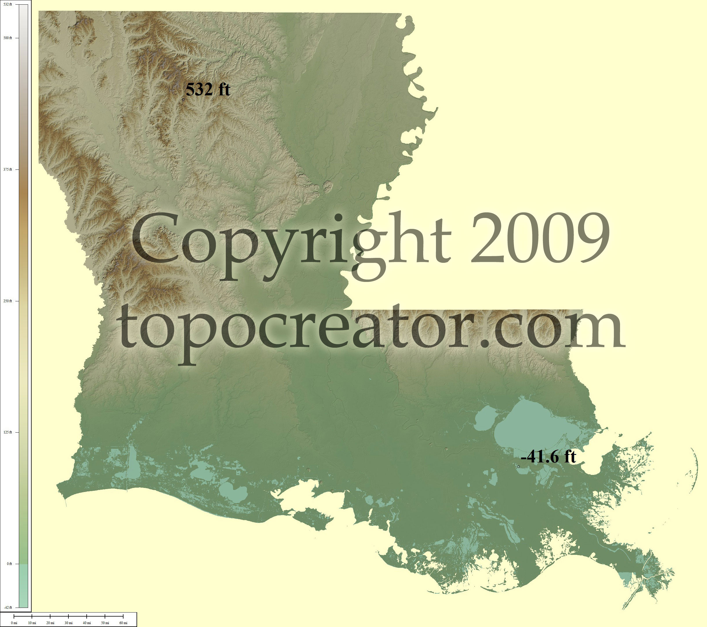 Terms of use. All maps displayed on this page or downloadable via a "download" link on this page are © 2009 topocreator.com released to the public under a Creative Commons Attribution-Share Alike license. Maps are available for purchase for a small fee for educational, personal, and commercial usage under an alternative license. The elevation data used in the creation of these maps has been obtained through the USGS, NOAA, and the US Census Bureau via the public domain.